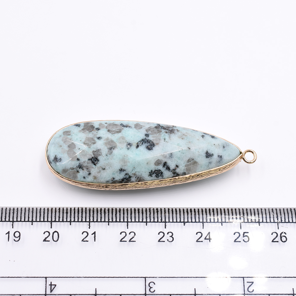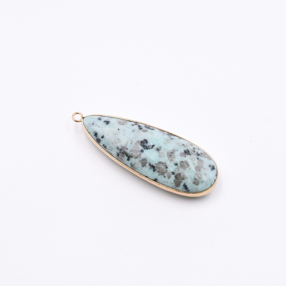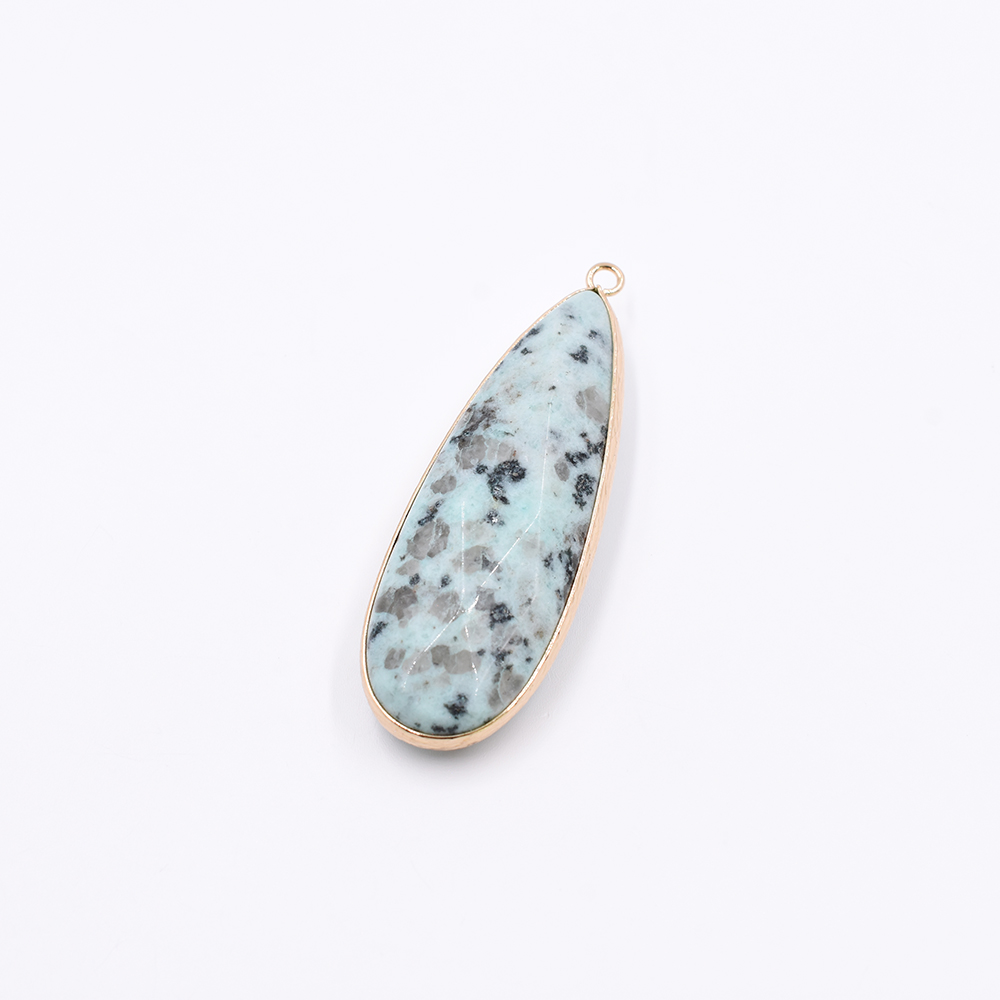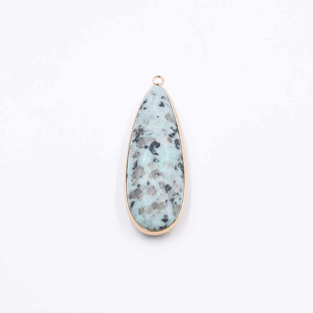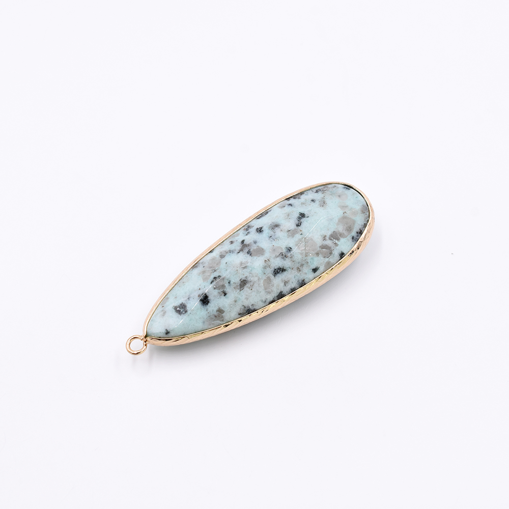 天然石フレームチャーム しずく型カット 1カン ブルーアゲート 57x20mm ゴールド (1ヶ)