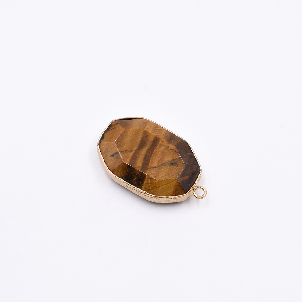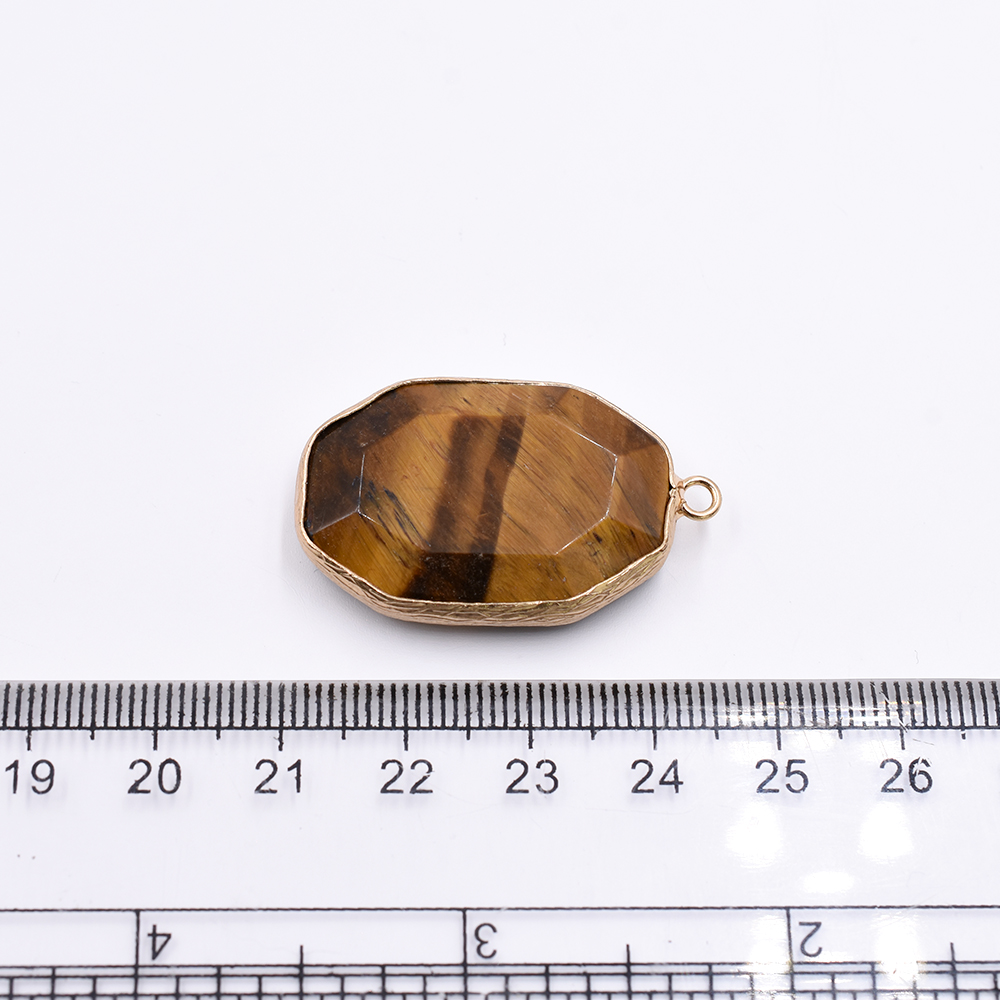 天然石フレームチャーム オーバルカット 1カン タイガアイ 35x22mm ゴールド (1ヶ)