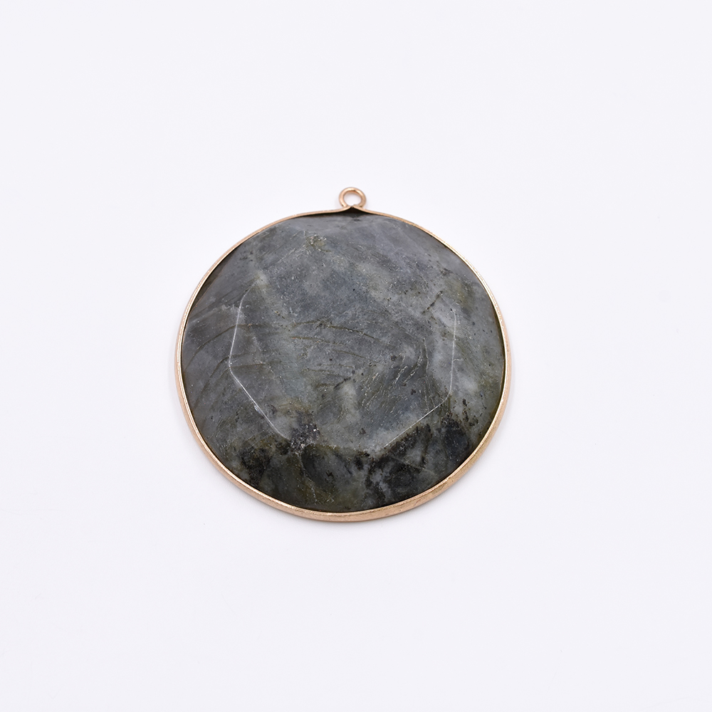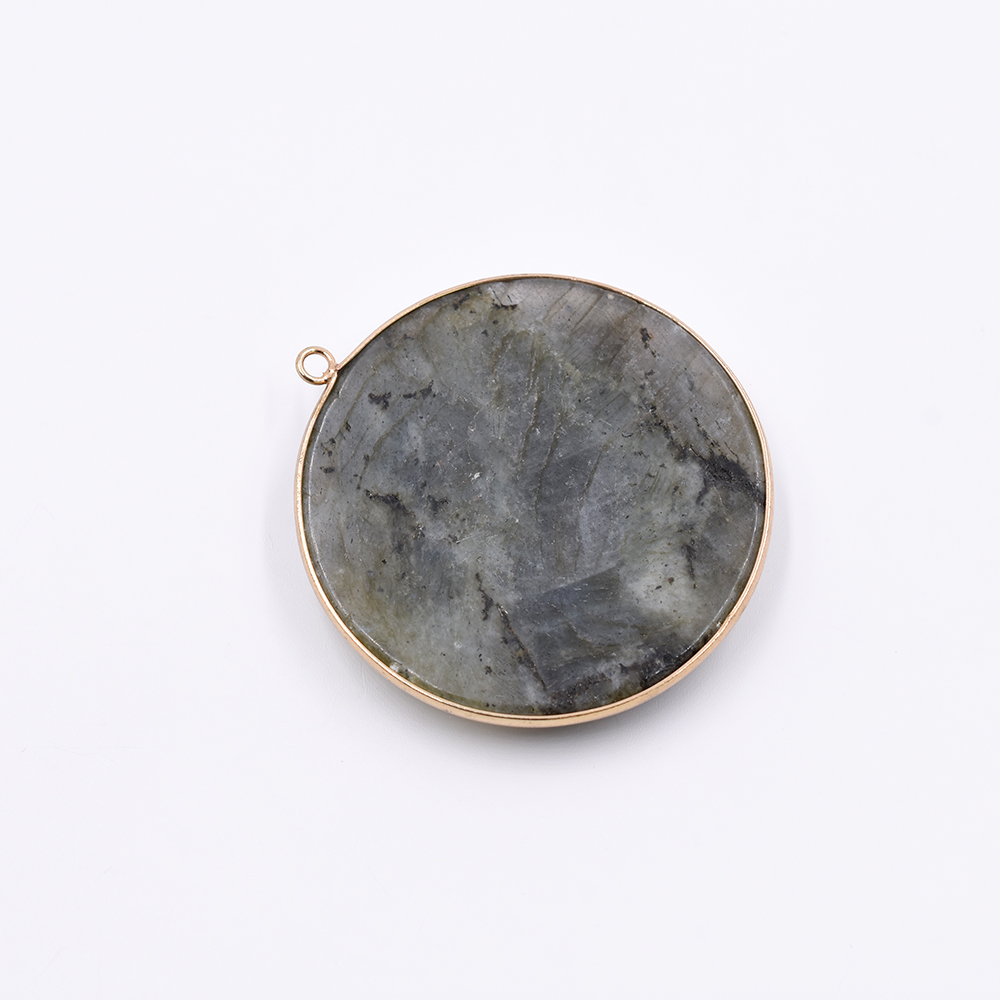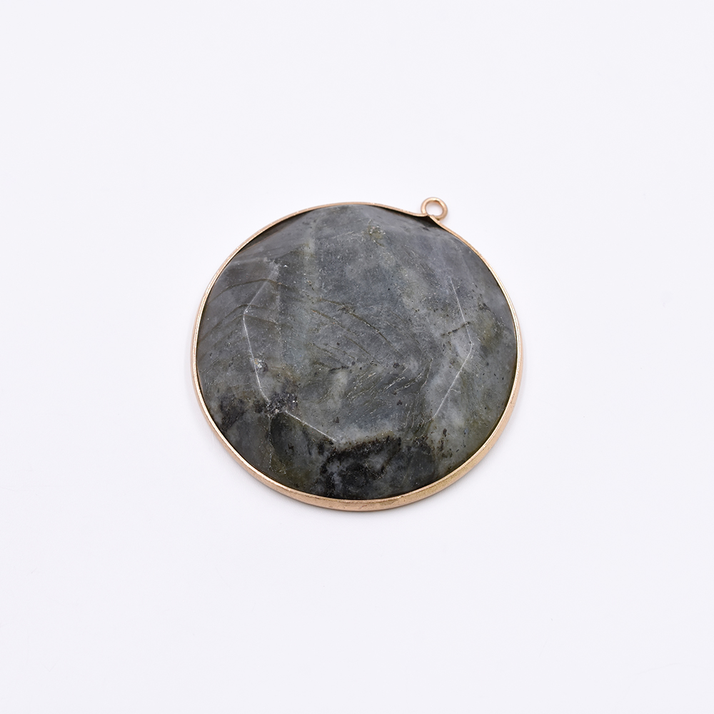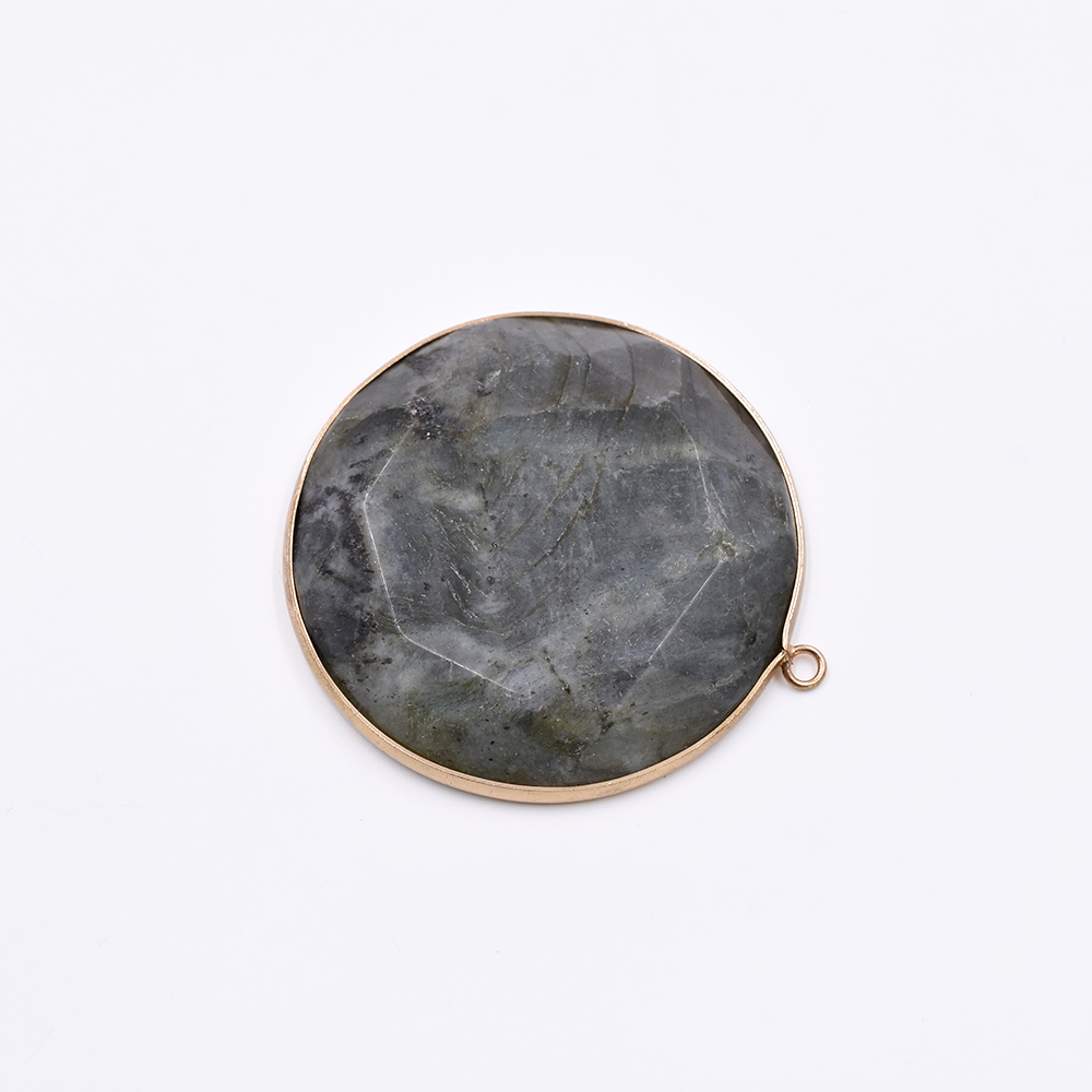 天然石フレームチャーム ラウンドカット 1カン ブラックアゲート 50x46mm ゴールド (1ヶ)