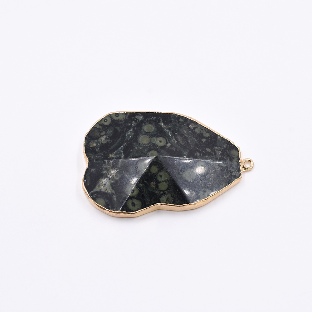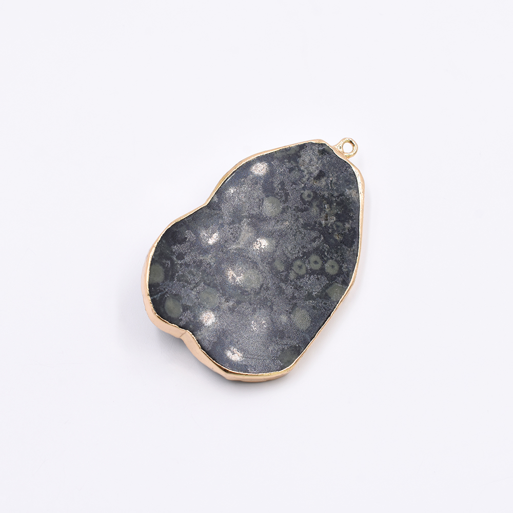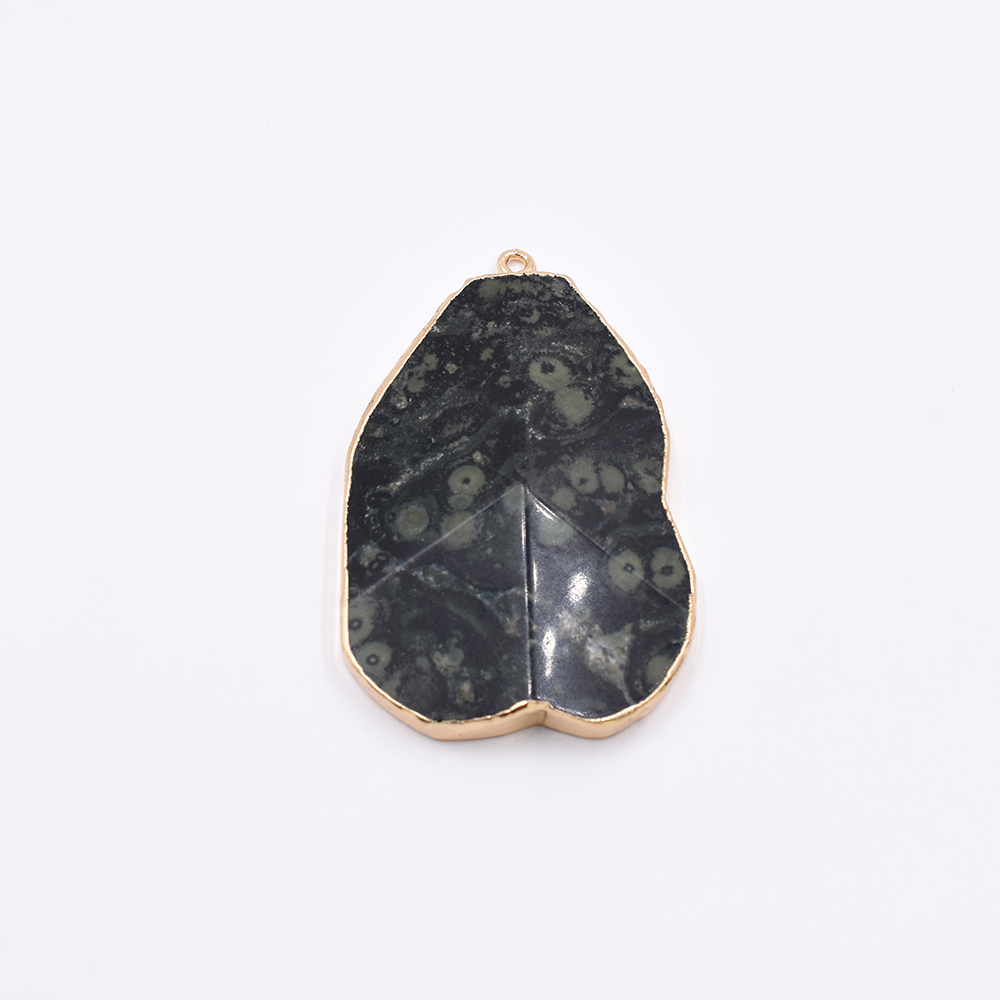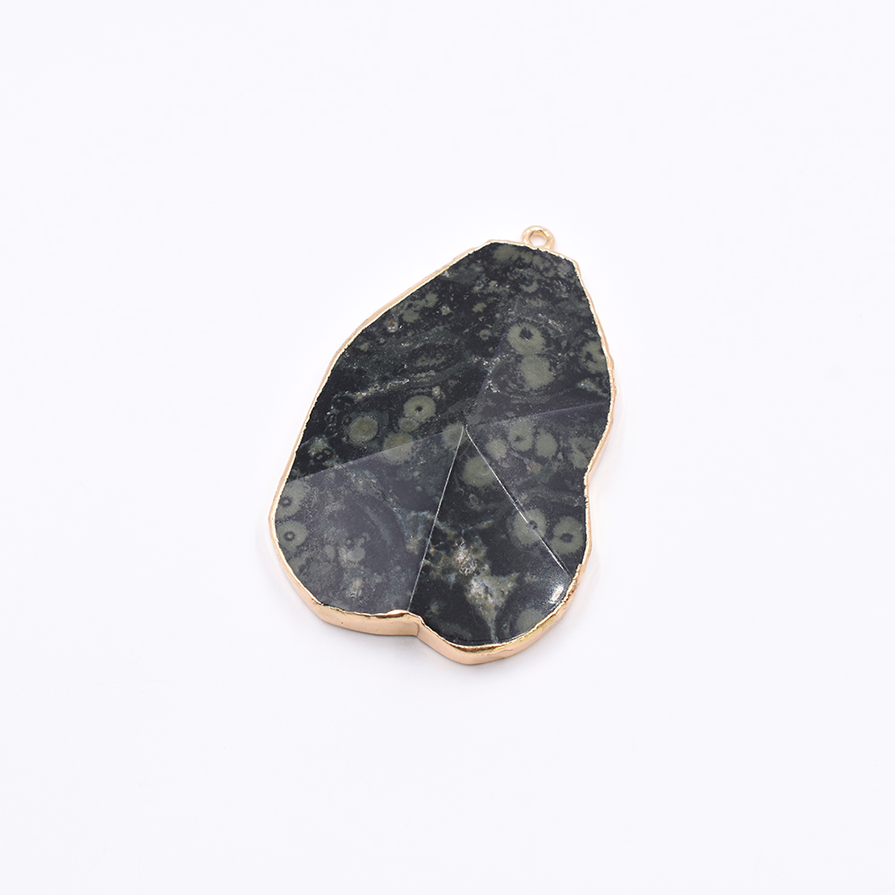 天然石フレームチャーム 不規則カット 1カン ブラックアゲート 56x36mm ゴールド (1ヶ)