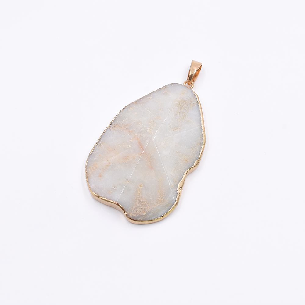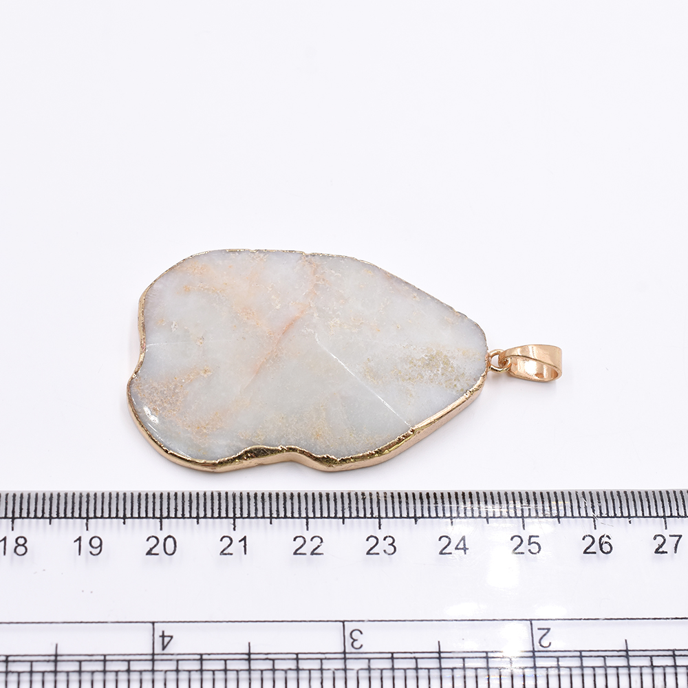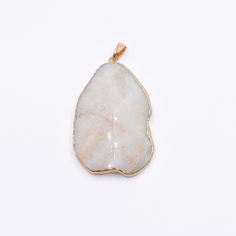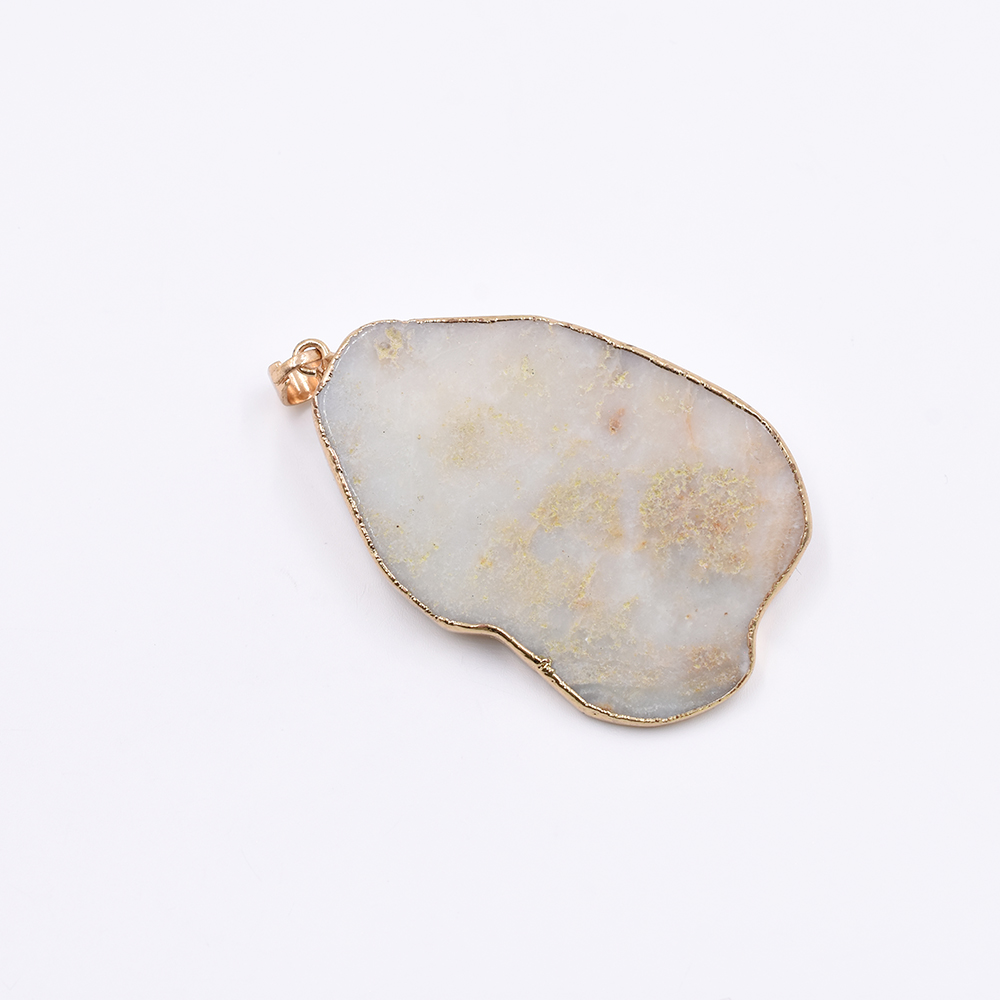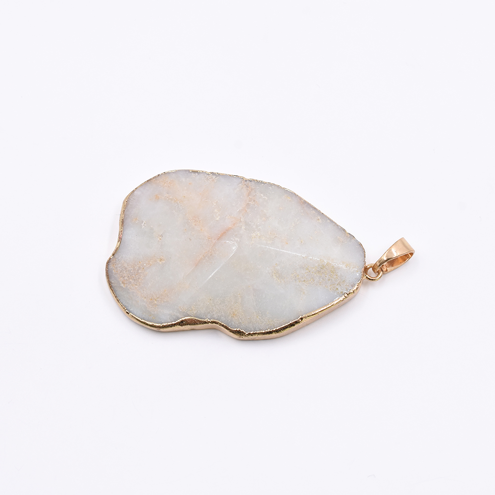 天然石ペンダントトップ 不規則カット 1カン アイボリーアゲート 55x35mm ゴールド (1ヶ)