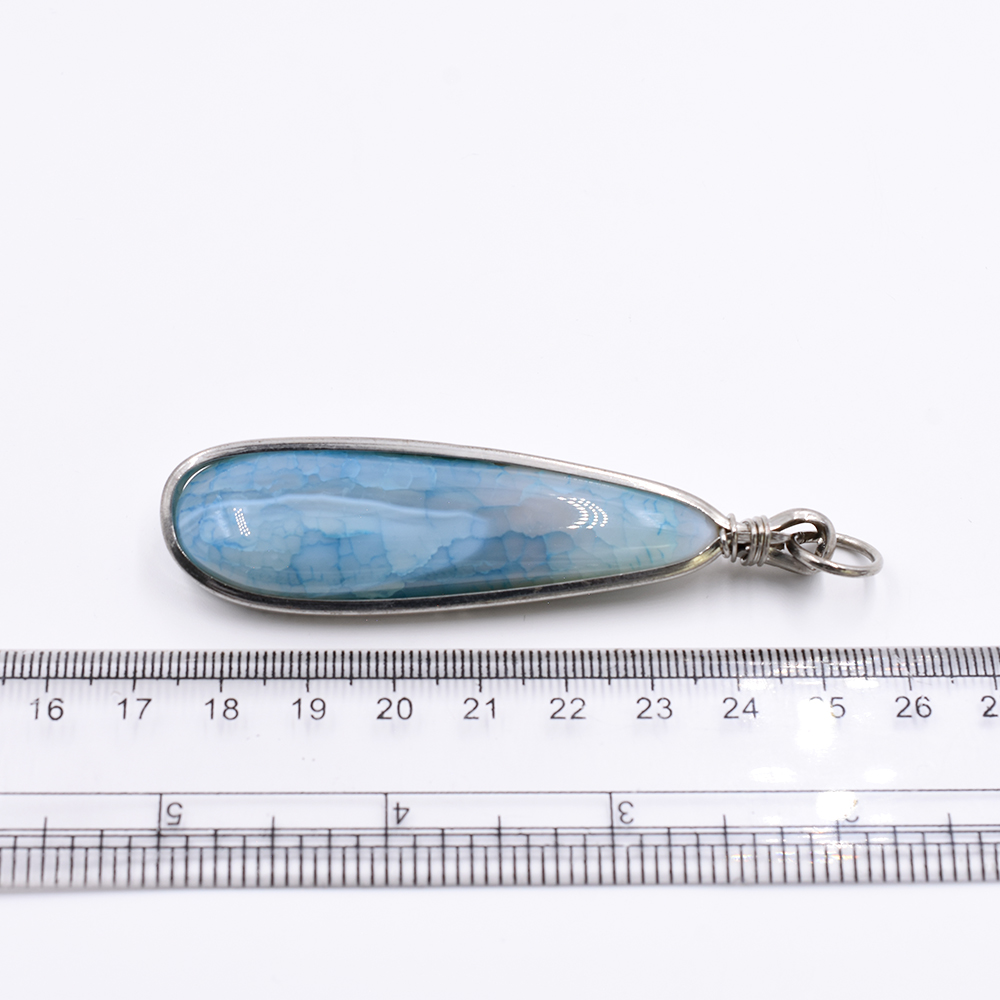 天然石フレームチャーム しずく型 1カン ブルーアゲート 80x22mm ロジウム (1ヶ)