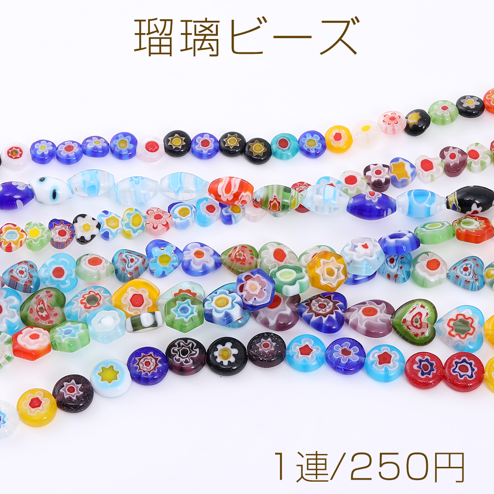 瑠璃ビーズ コイン型/ハート型/オーバル/六角形(1連)