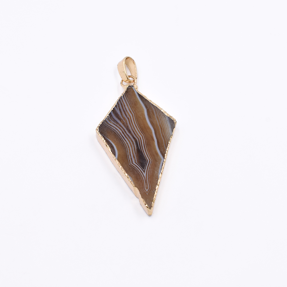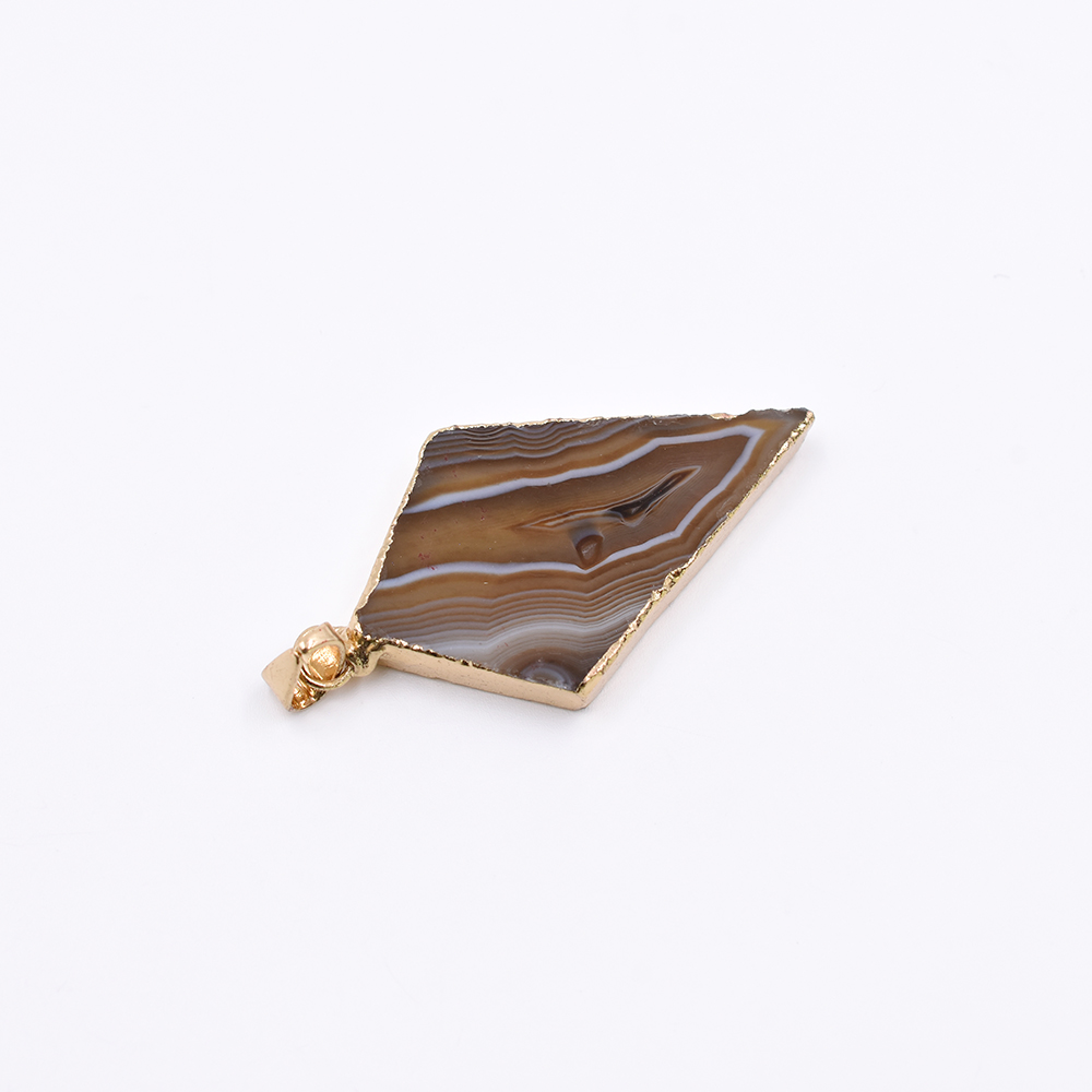 天然石ペンダントトップ ひし形 1カン ブラウンアゲート 46x25mm ゴールド (1ヶ)