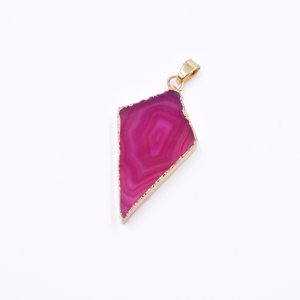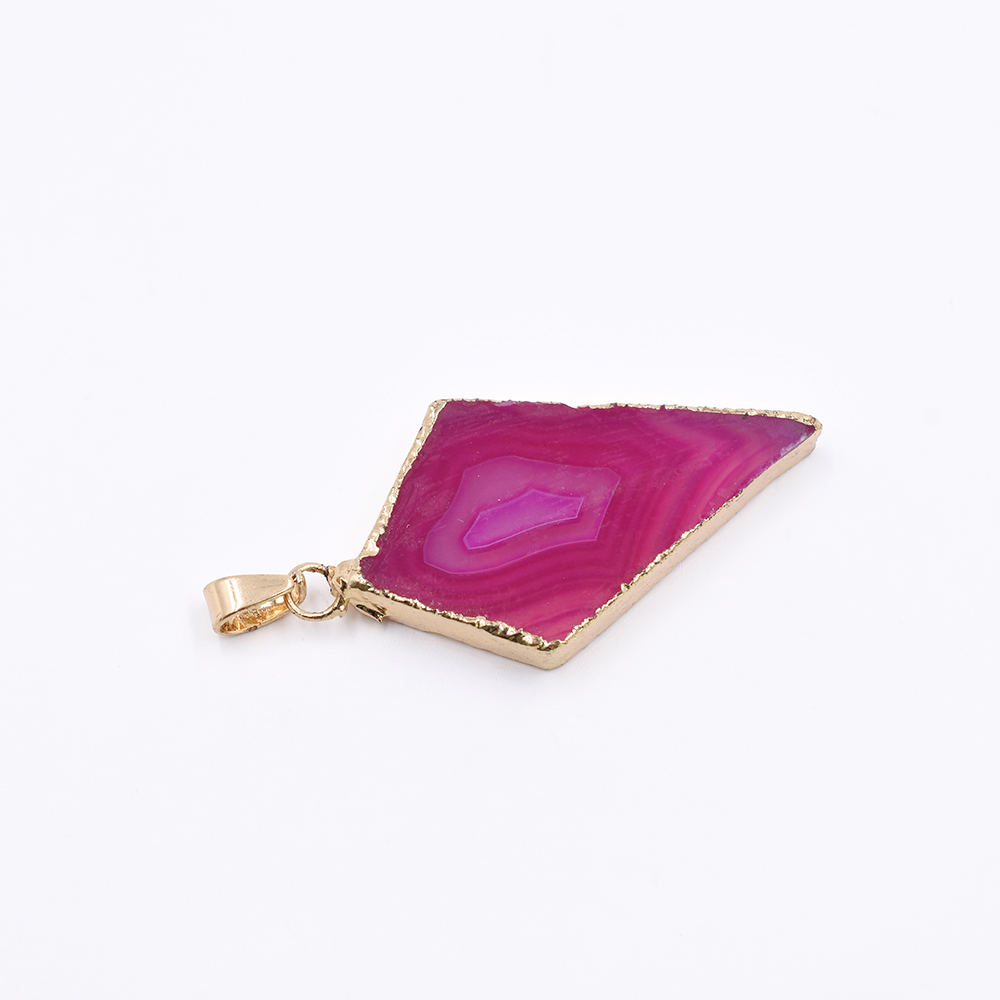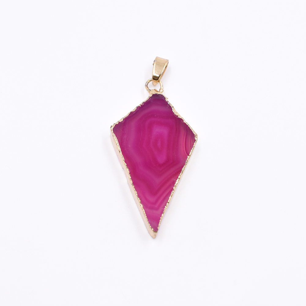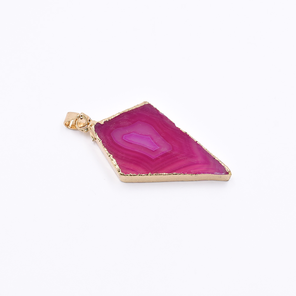 天然石ペンダントトップ ひし形 1カン ローズピンクアゲート 49x25mm ゴールド (1ヶ)