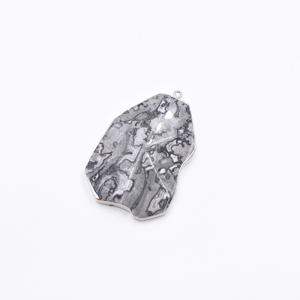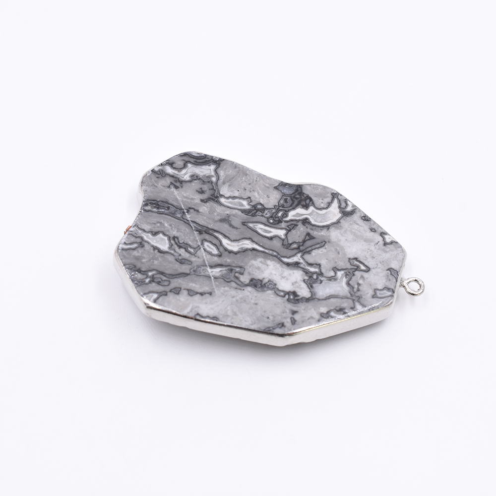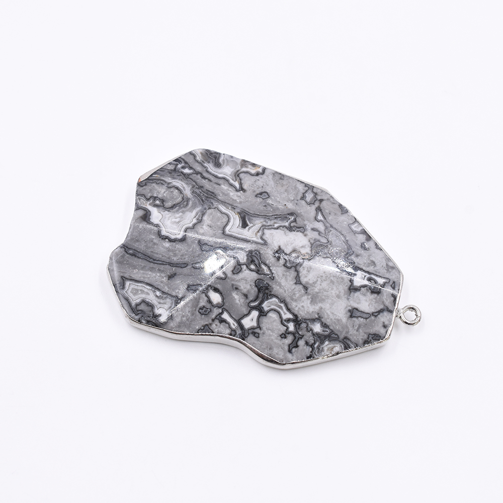 天然石フレームチャーム 不規則カット 1カン グレーアゲート 57x37mm ロジウム (1ヶ)