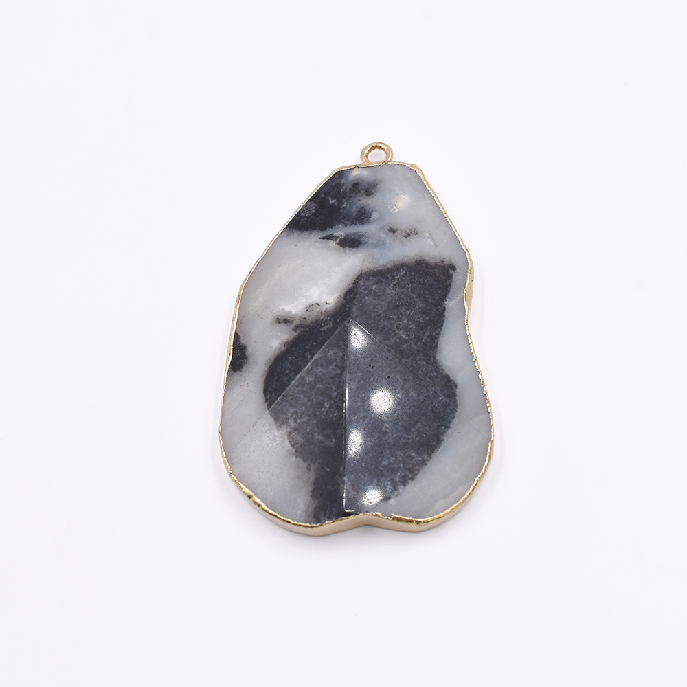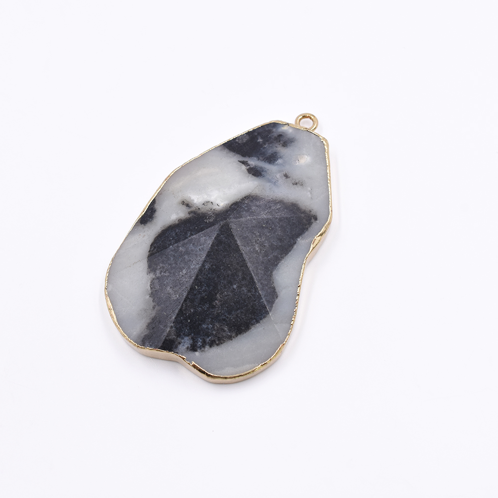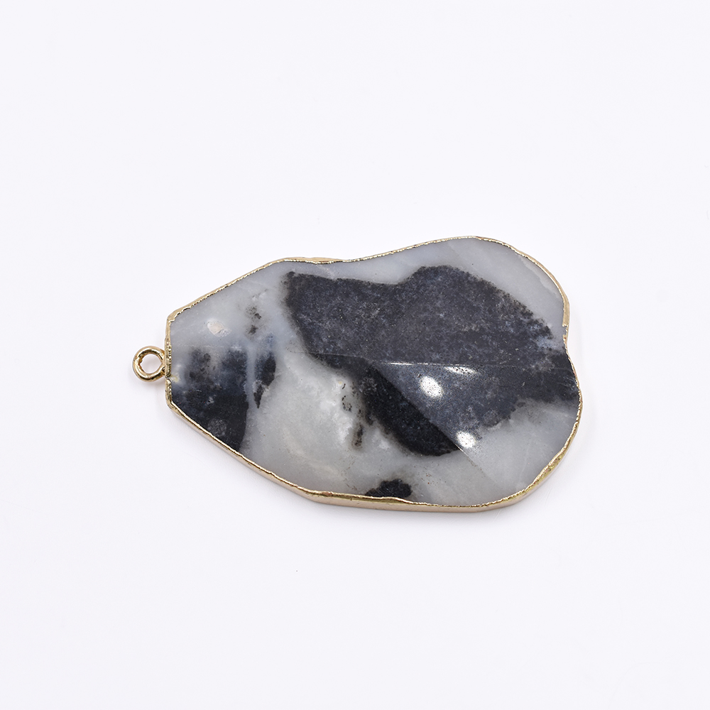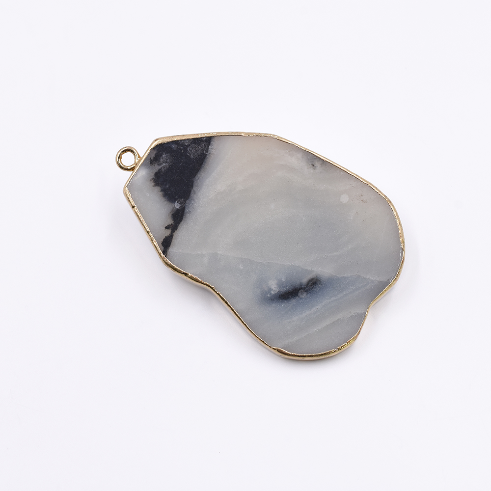 天然石フレームチャーム 不規則カット 1カン グレーアゲート 56x35mm ゴールド (1ヶ)