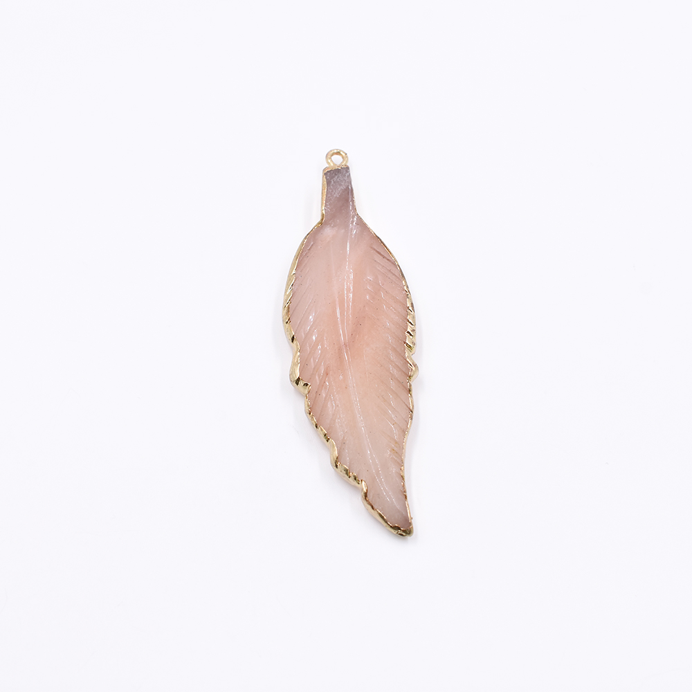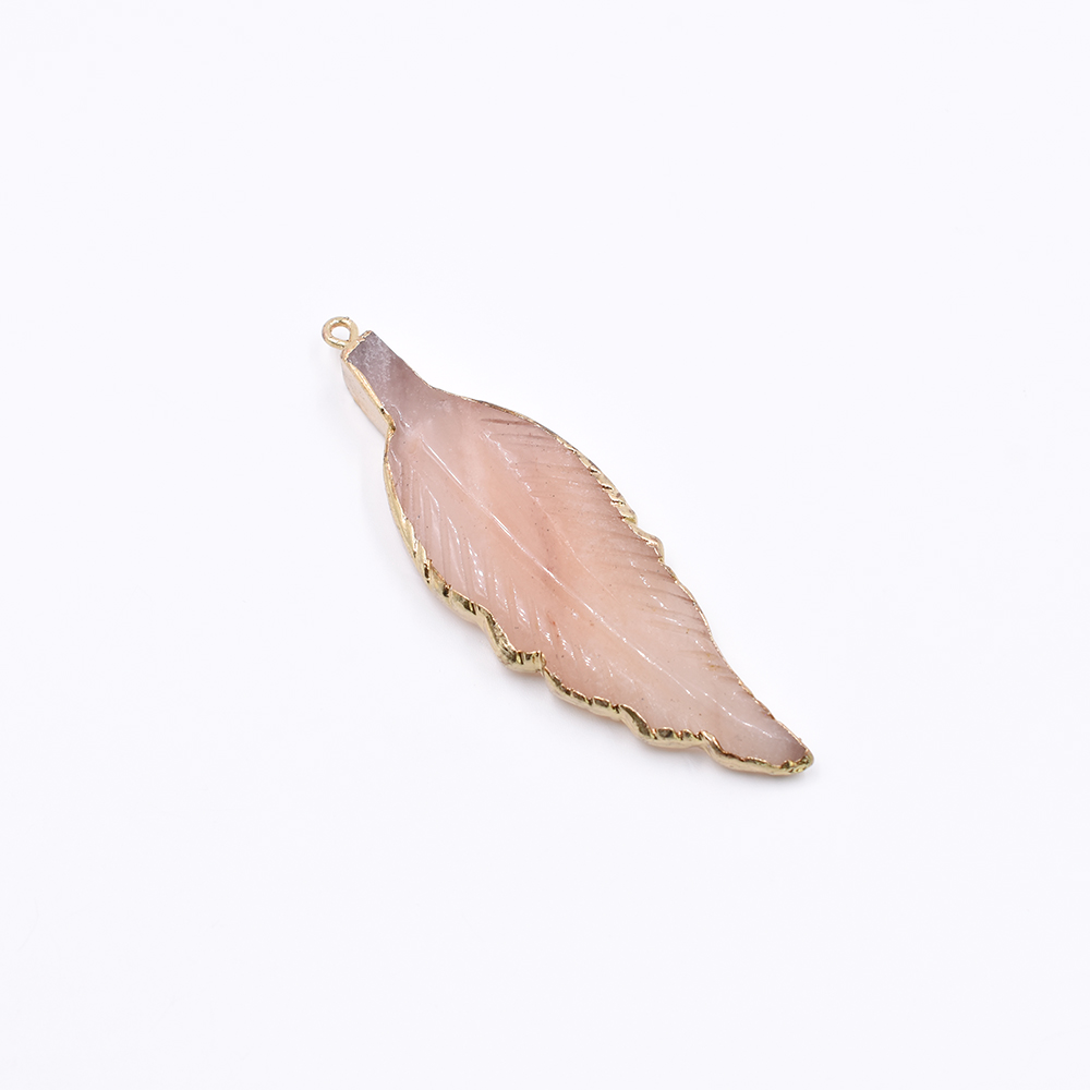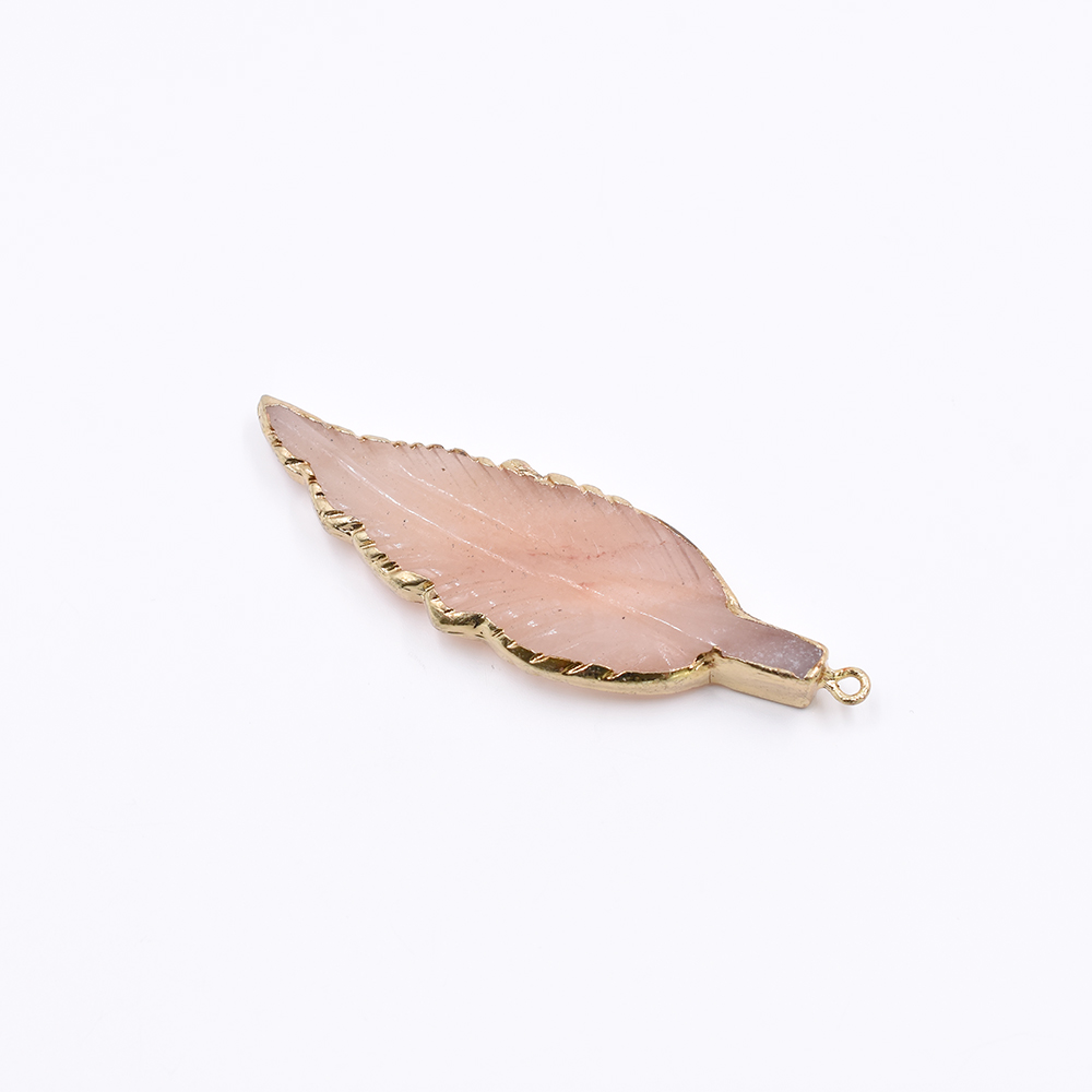 天然石フレームチャーム リーフ 1カン ピンクアゲート 70x22mm ゴールド (1ヶ)