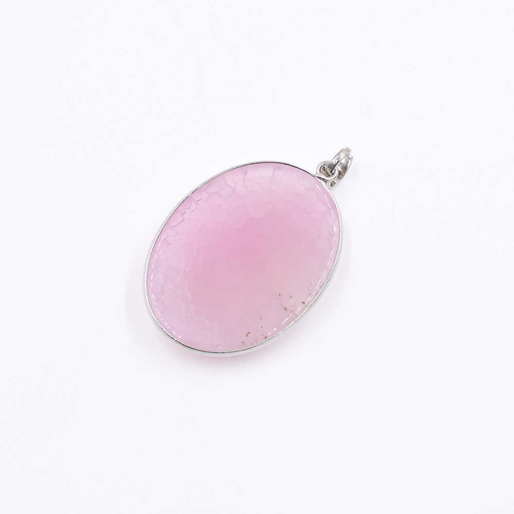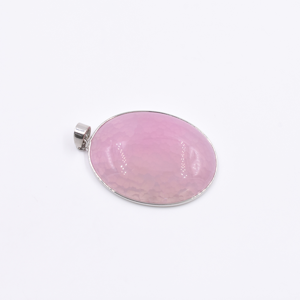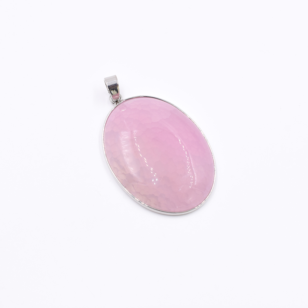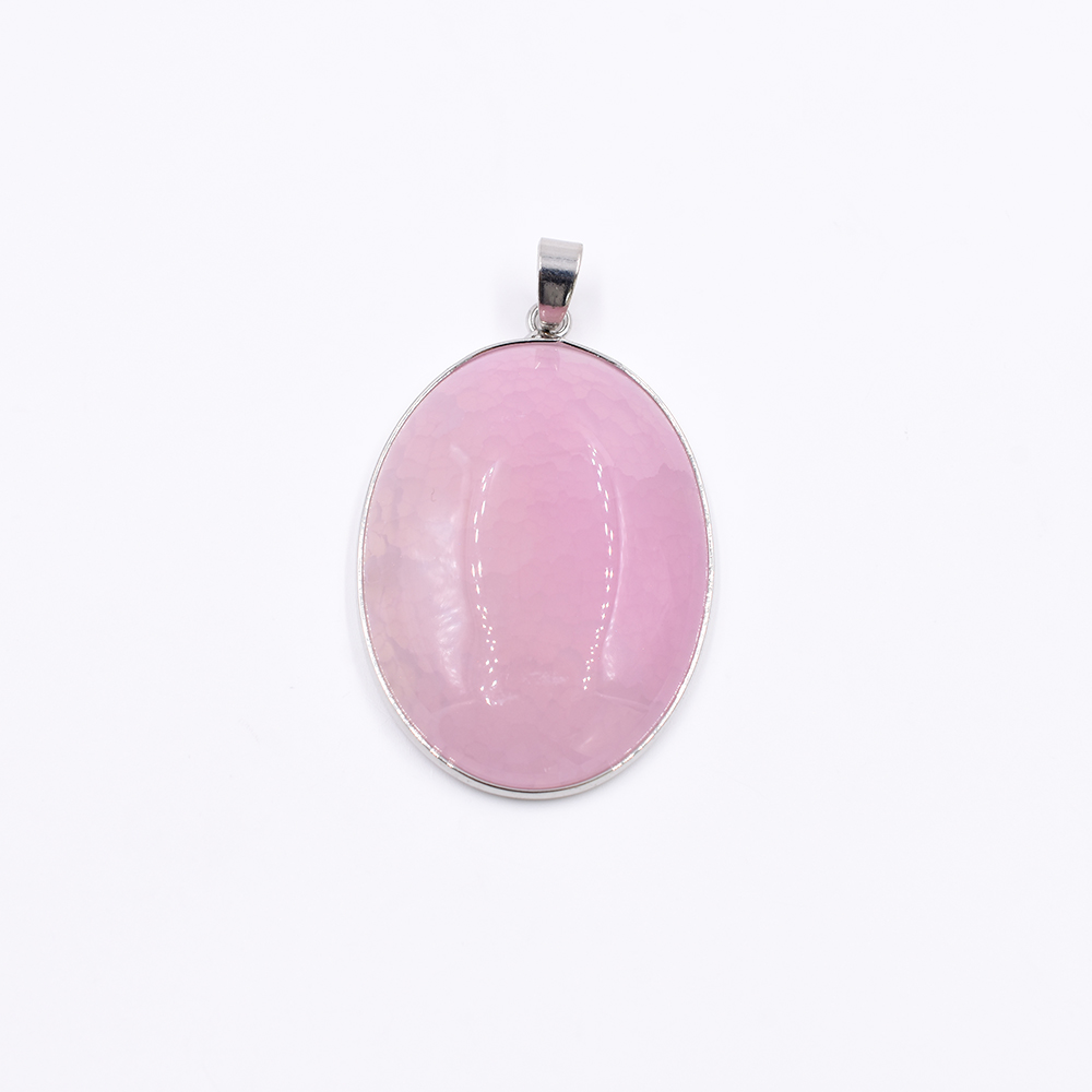天然石ペンダントトップ オーバル 1カン ピンクアゲート 45x31mm ロジウム (1ヶ)