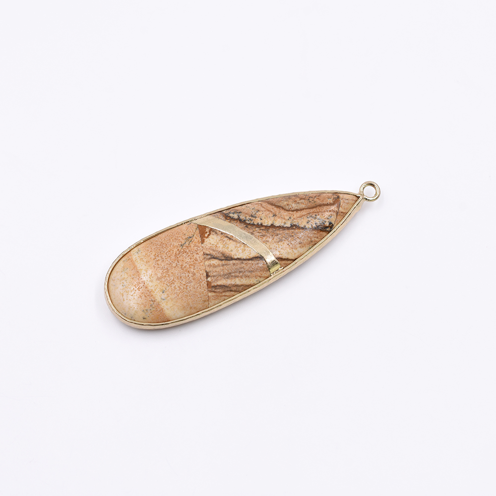 天然石フレームチャーム しずく型 1カン ピクチャージャスパー 56x19mm ゴールド (1ヶ)