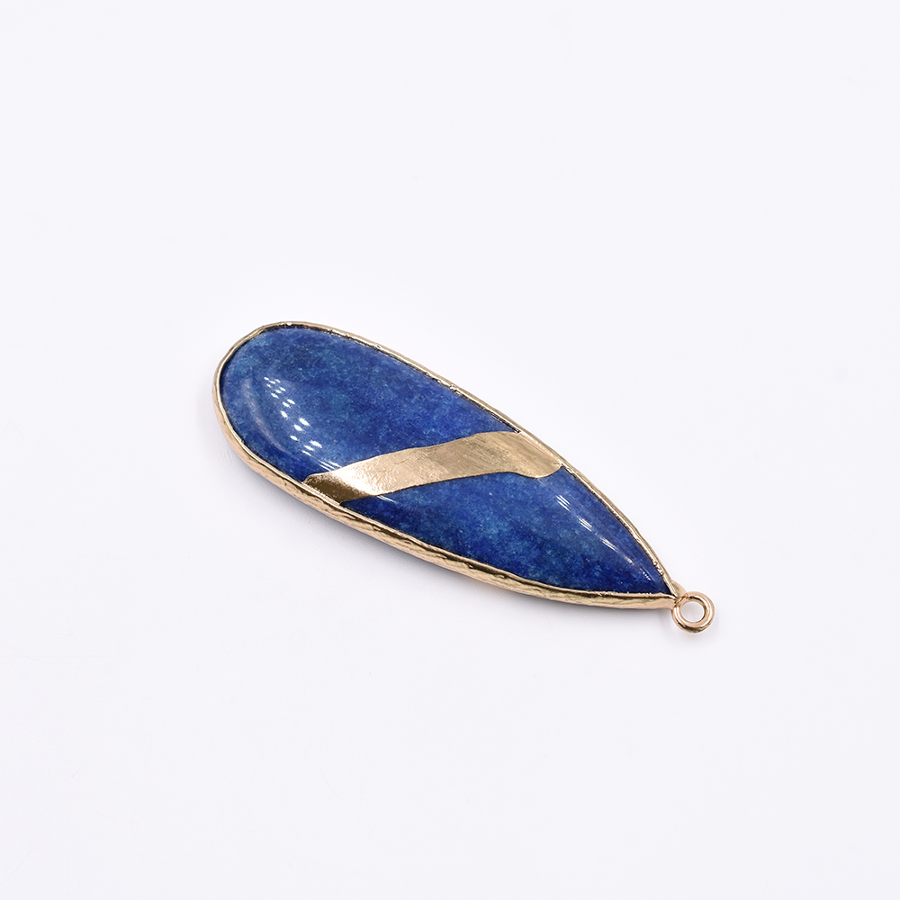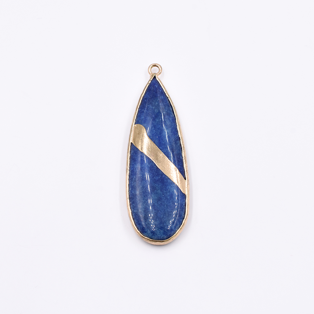天然石フレームチャーム しずく型 1カン ブルーアゲート 56x19mm ゴールド (1ヶ)