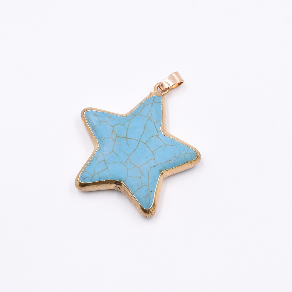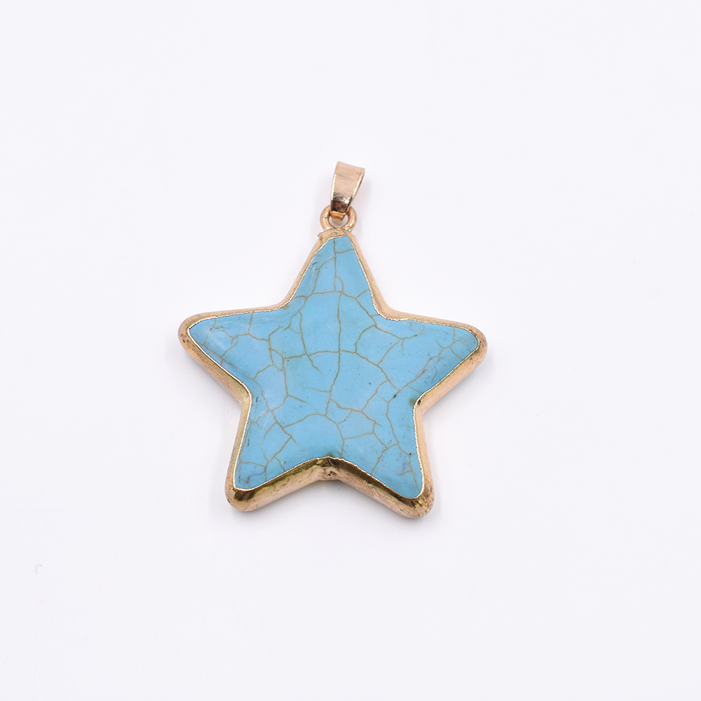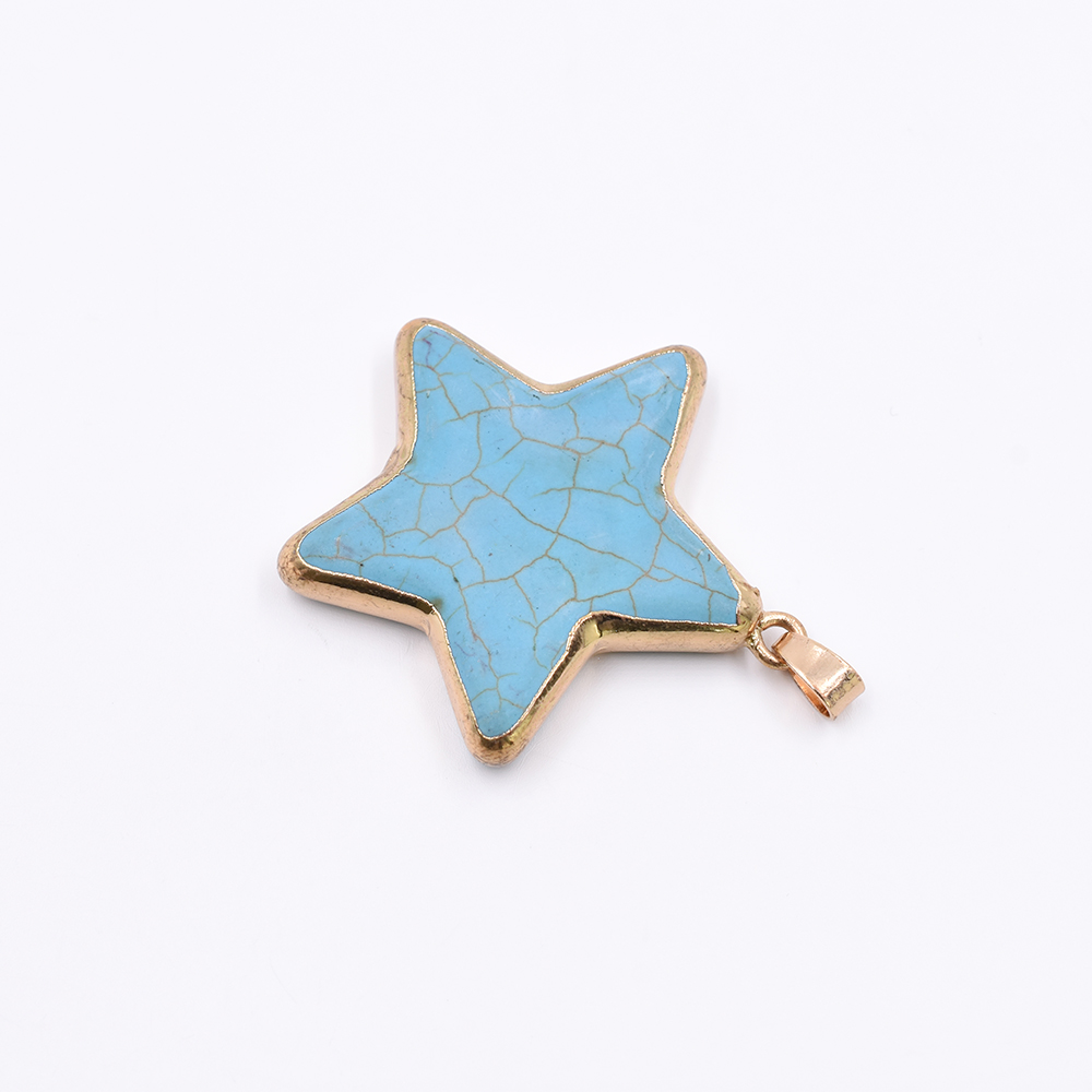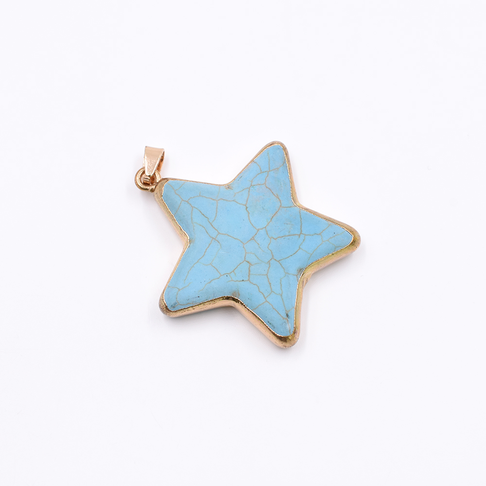 天然石ペンダントトップ 星形 1カン ターコイズ 44x41mm ゴールド (1ヶ)