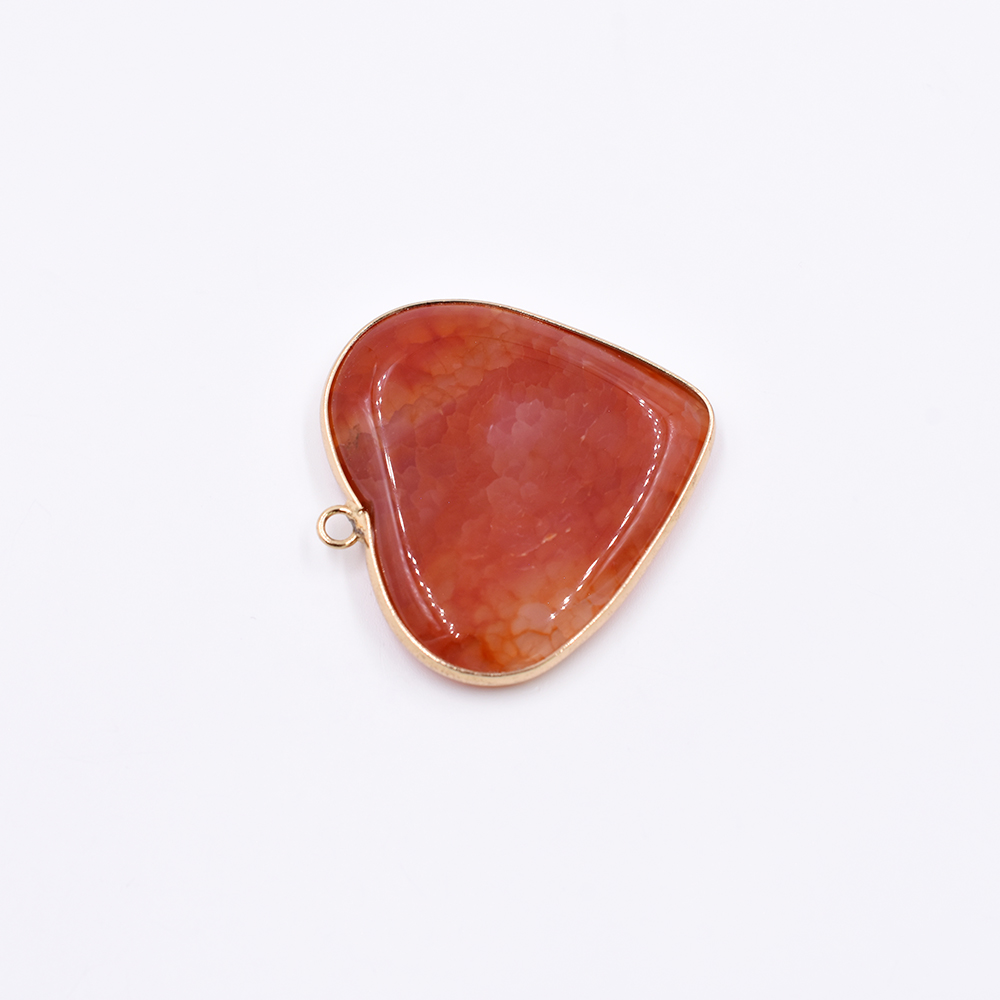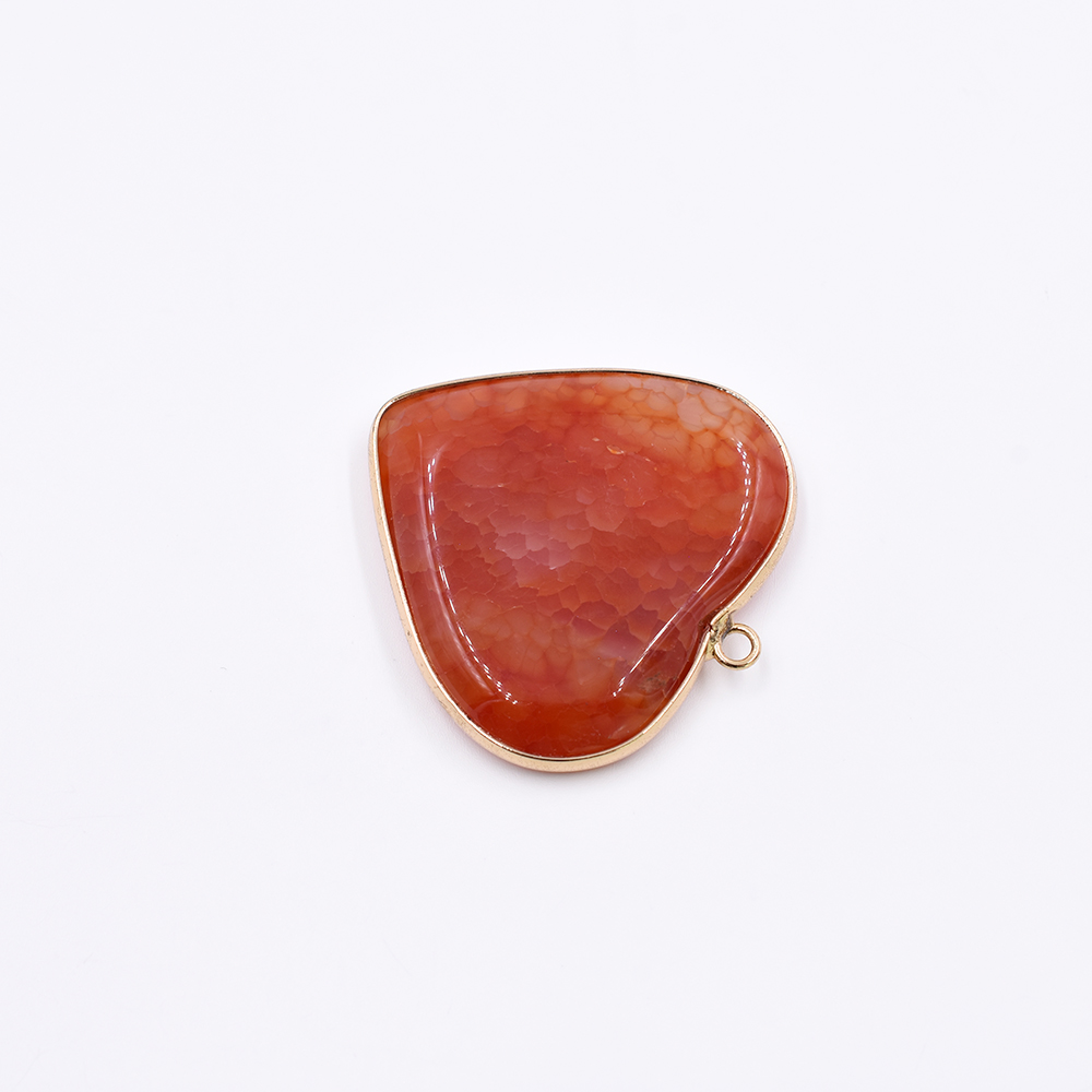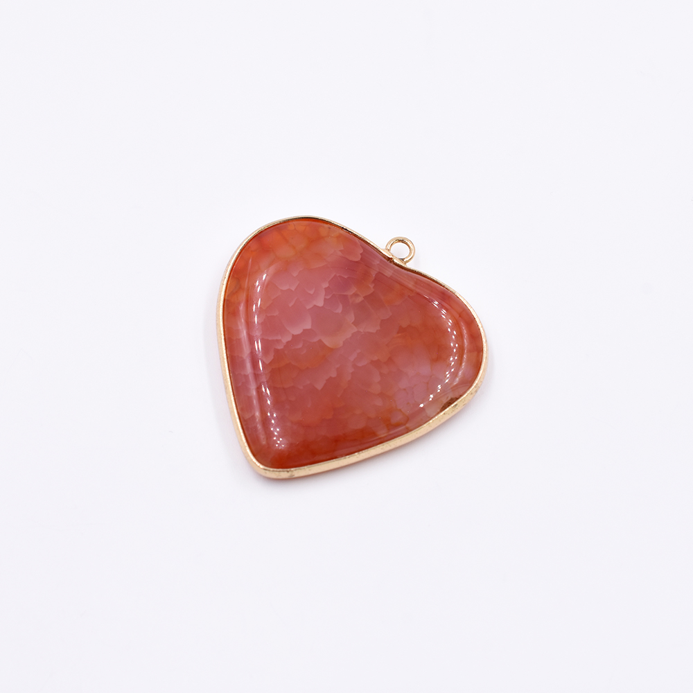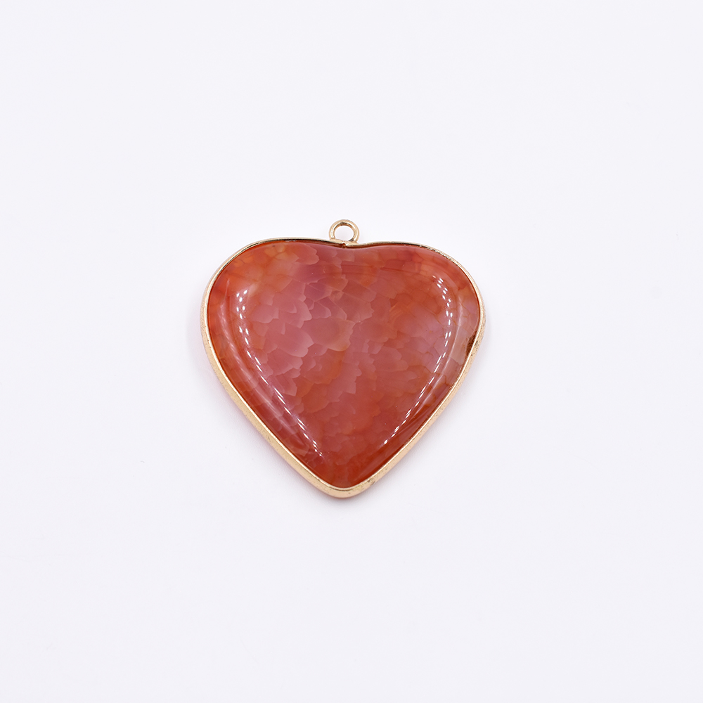 天然石フレームチャーム ハート型 1カン ブラウンアゲート 38x39mm ゴールド (1ヶ)