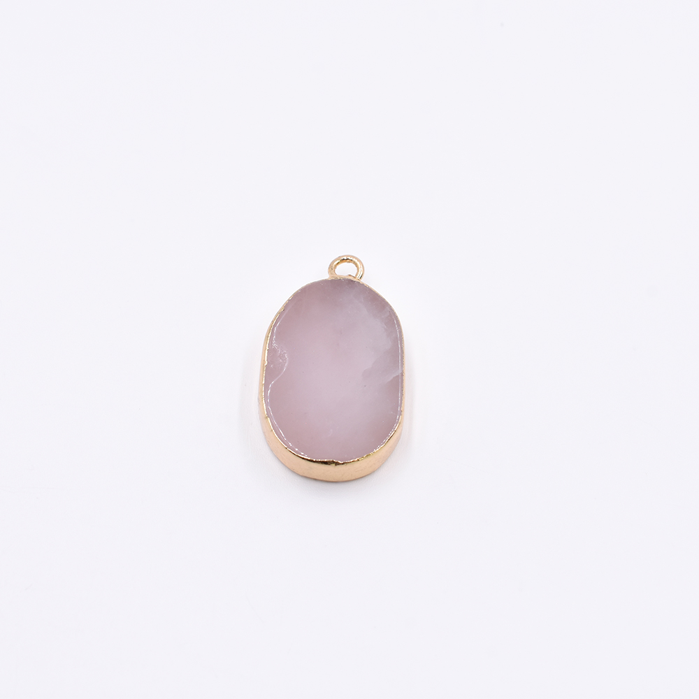 天然石フレームチャーム オーバル 1カン ピンクアゲート 28x17mm ゴールド (1ヶ)
