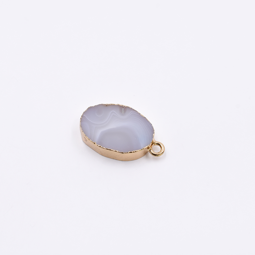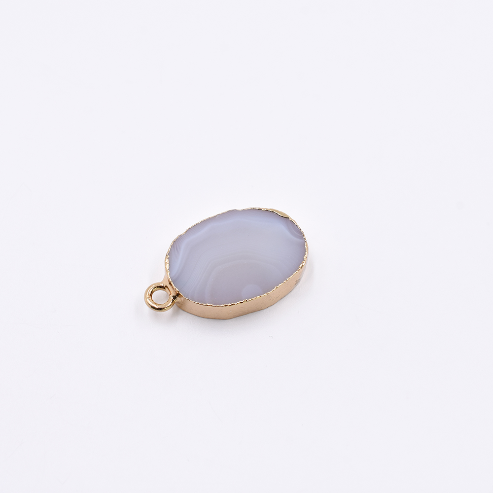 天然石フレームチャーム オーバル 1カン グレーアゲート 27x16mm ゴールド (1ヶ)