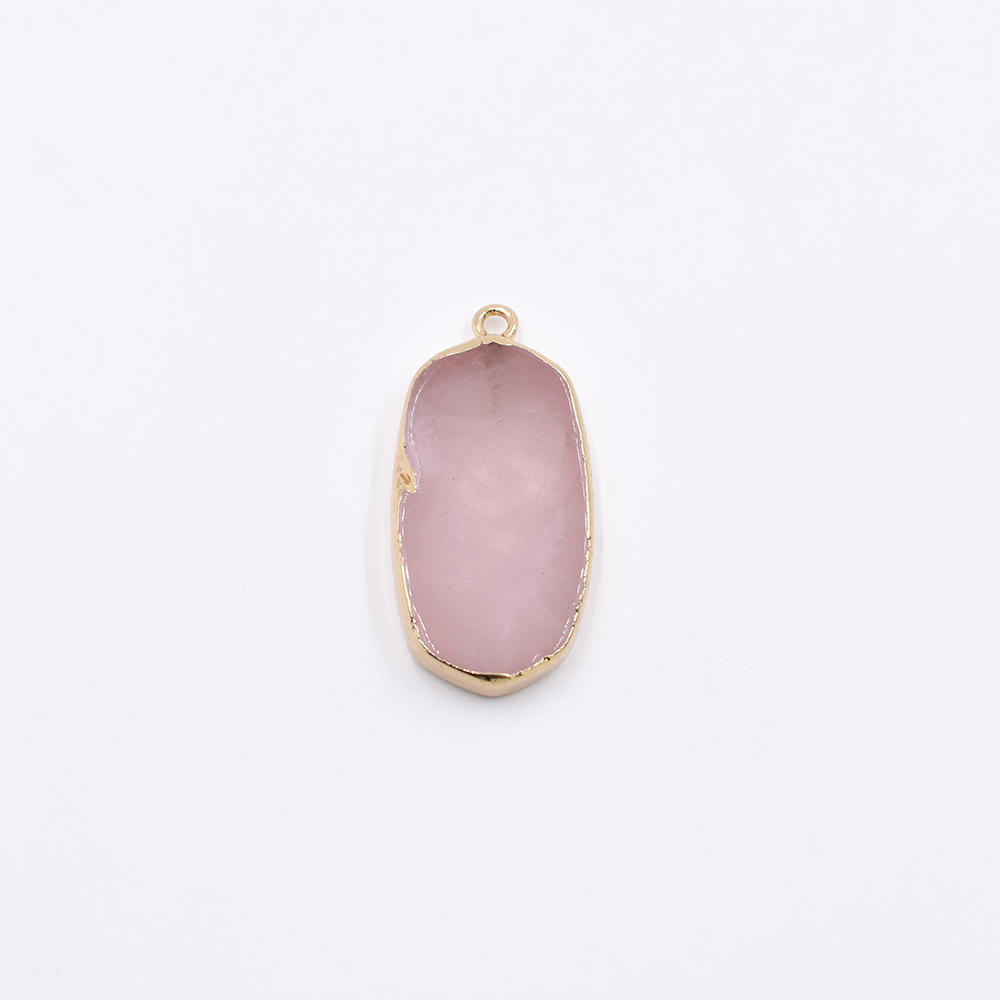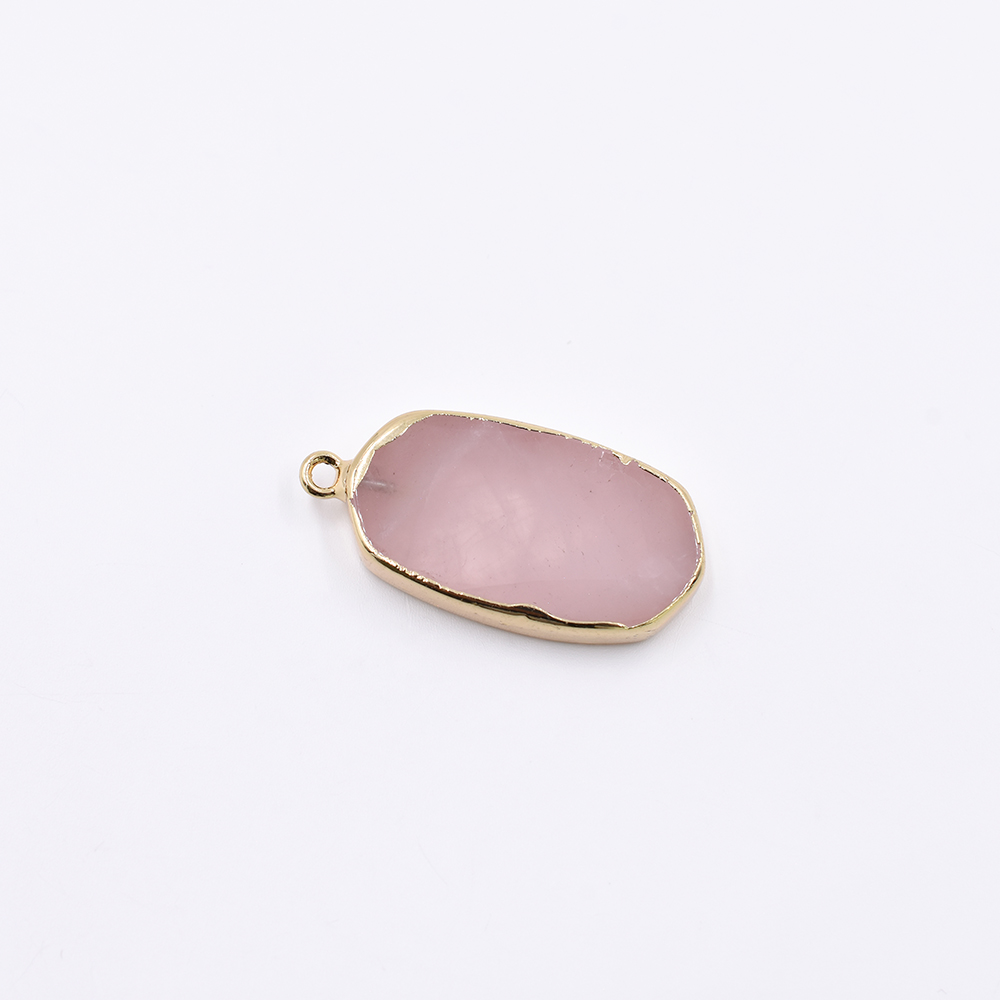 天然石フレームチャーム オーバル 1カン ピンクアゲート 32x16mm ゴールド (1ヶ)