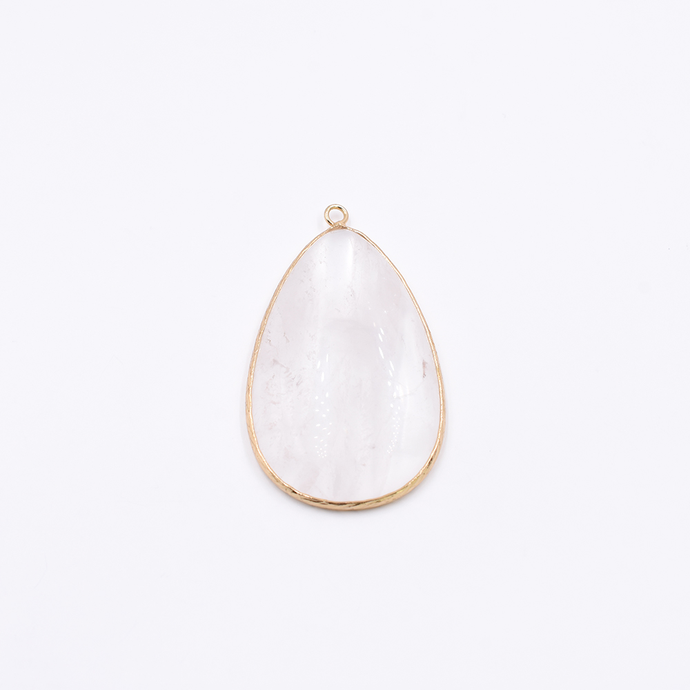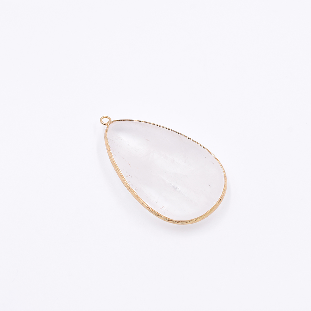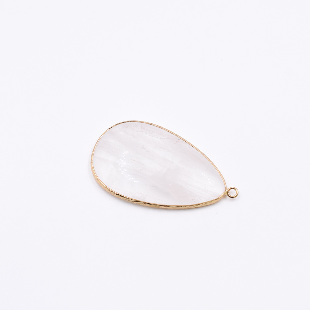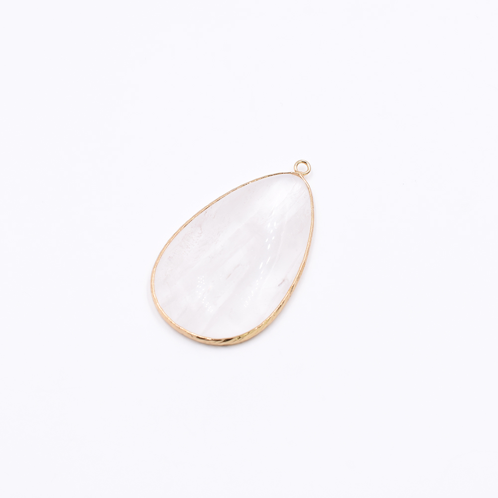 天然石フレームチャーム しずく型 1カン アイボリーアゲート 53x31mm ゴールド (1ヶ)
