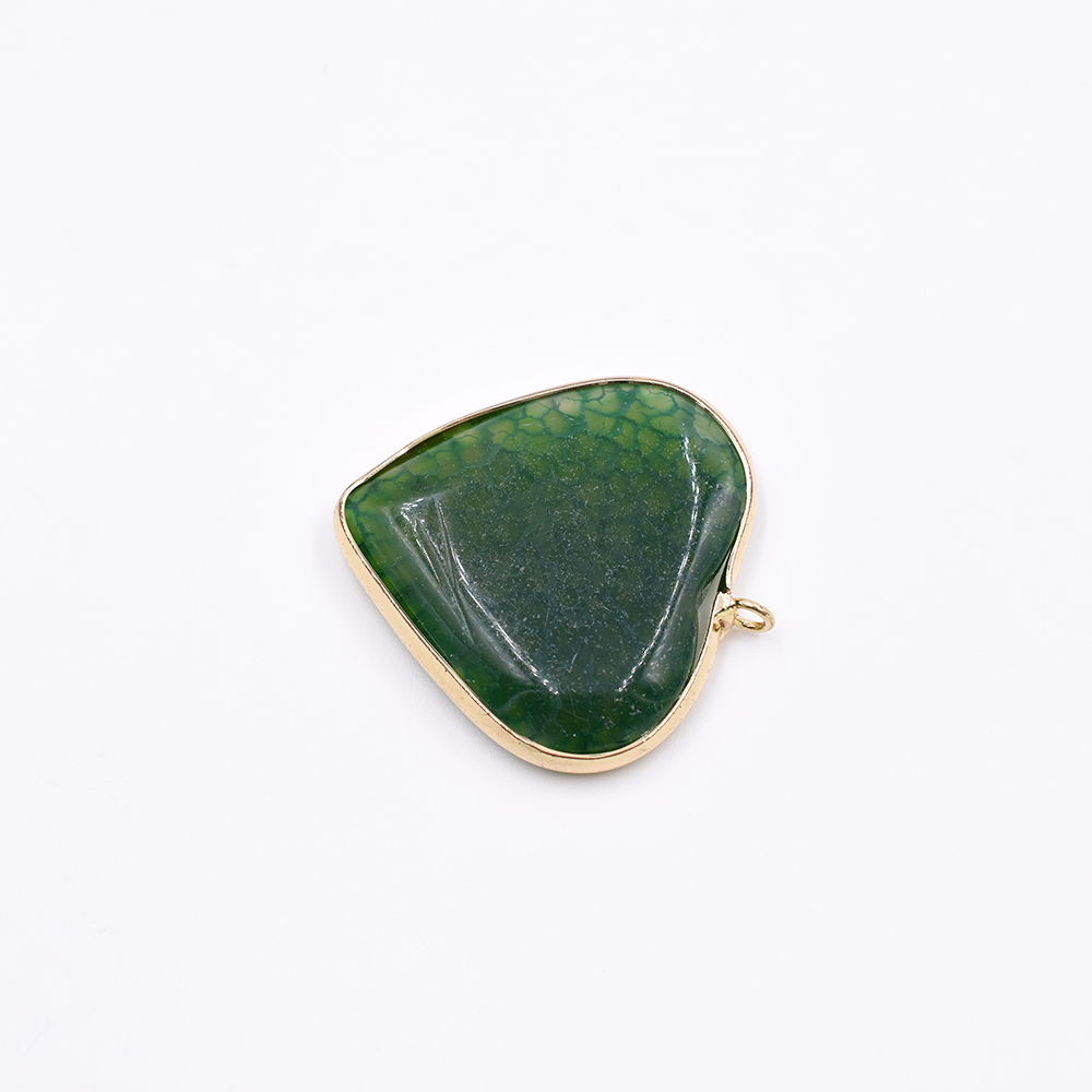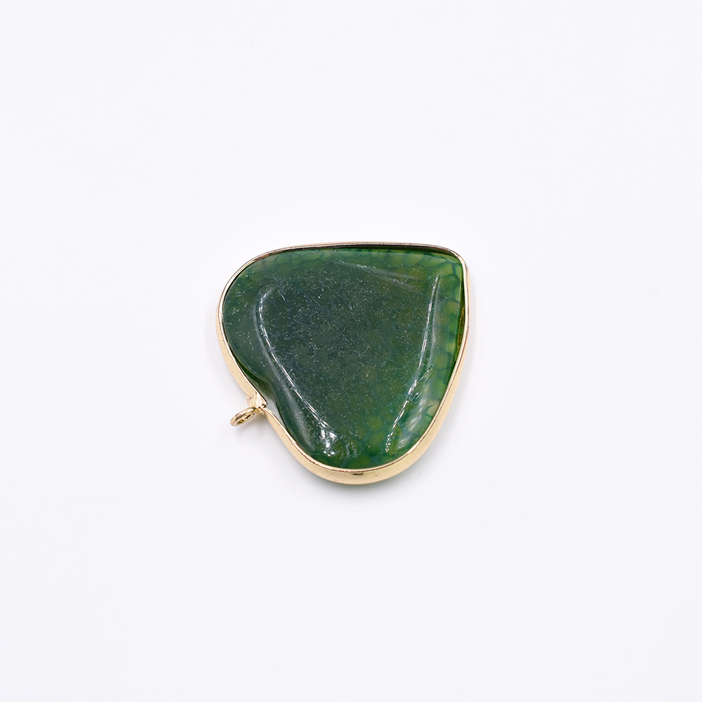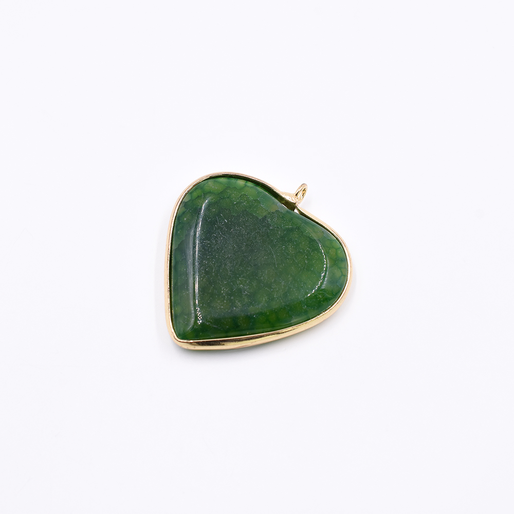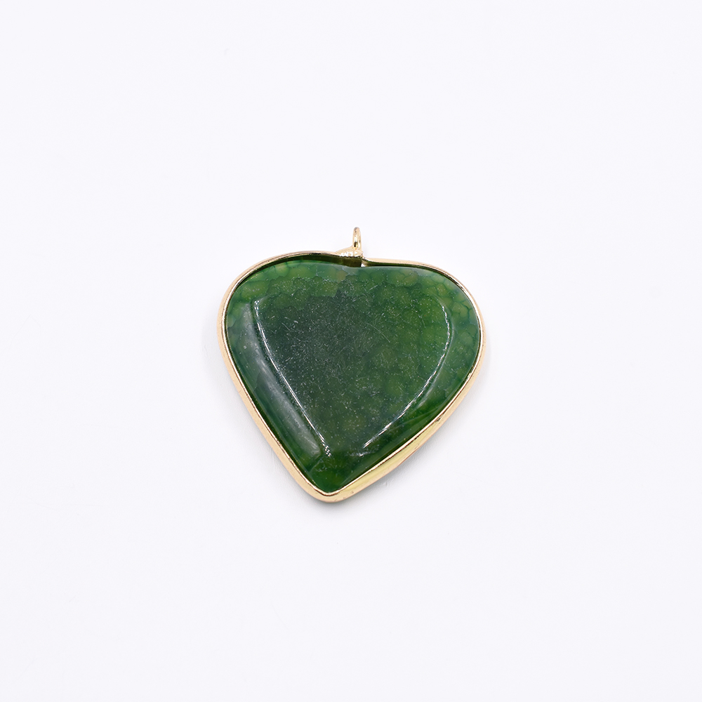 天然石フレームチャーム ハート型 1カン グリーンアゲート 36x34mm ゴールド (1ヶ)