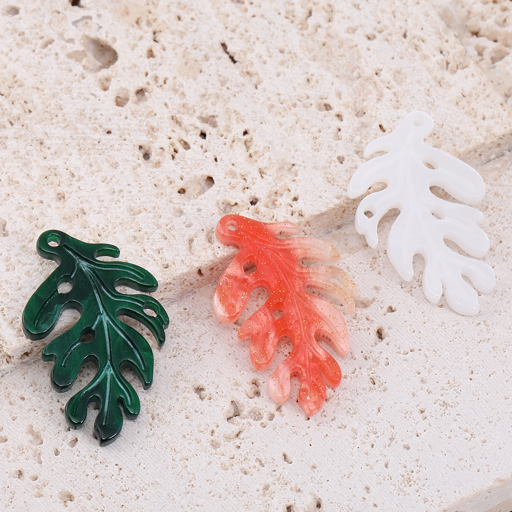 高品質アセテートパーツ リーフの枝 1穴 20×32mm(6ヶ)