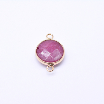 天然石コネクターチャーム ピンククォーツ 円形カッ 2カン 16×24mm ゴールド (1ヶ)