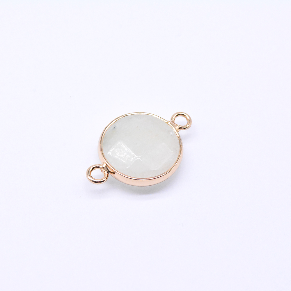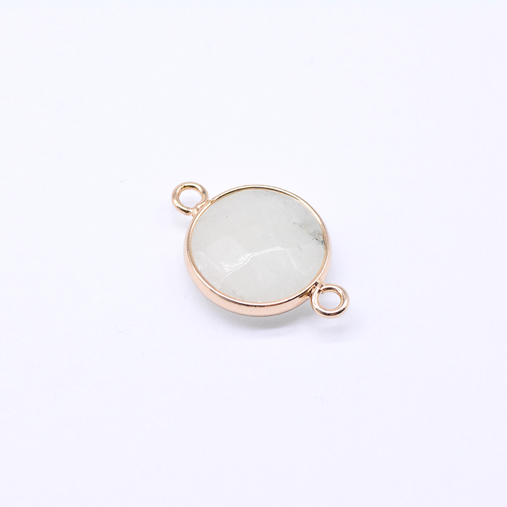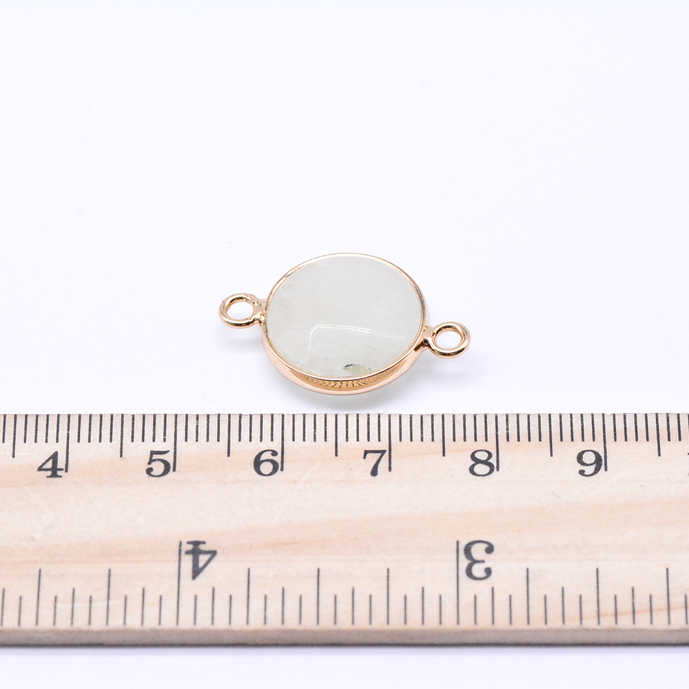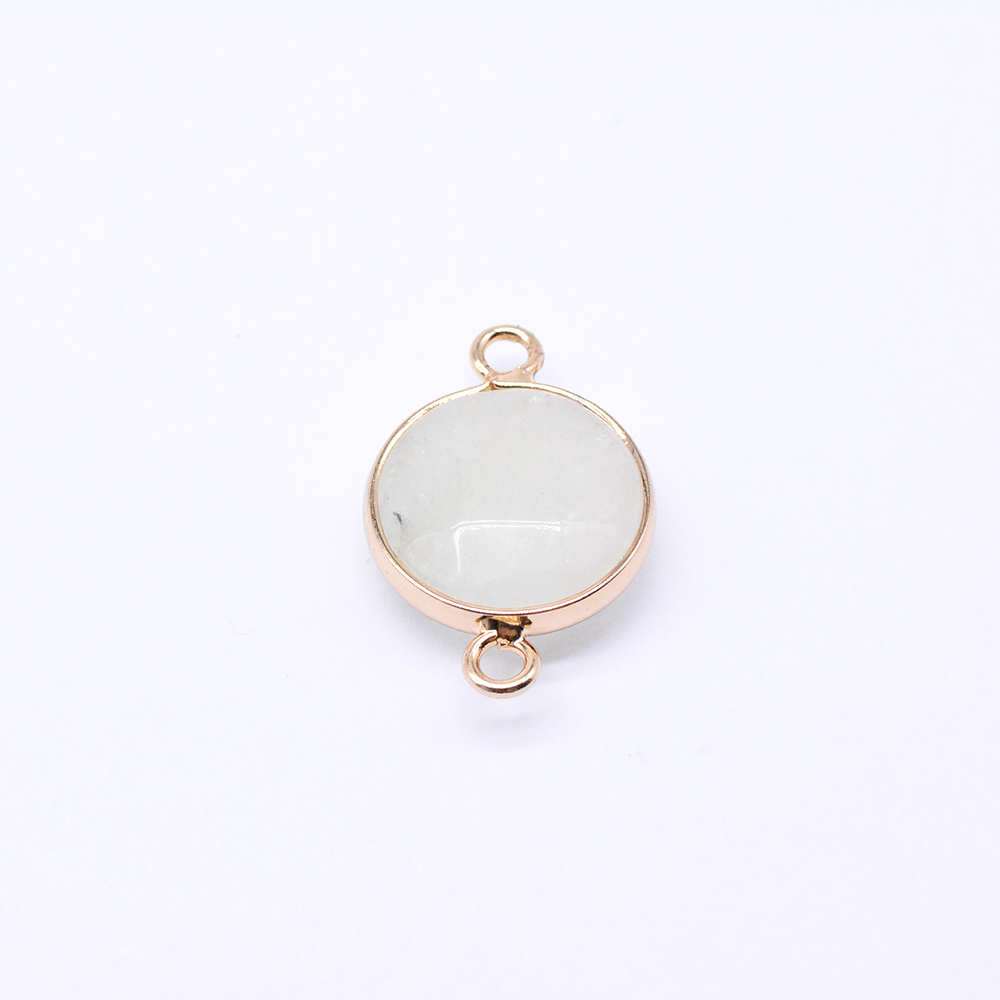 天然石コネクターチャーム ホワイトクォーツ 円形カッ 2カン 16×24mm ゴールド (1ヶ)
