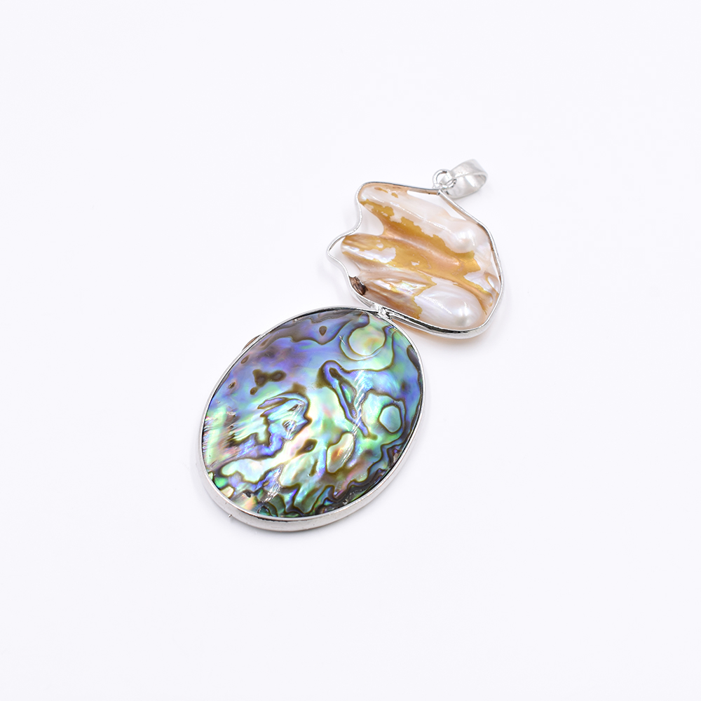天然石ペンダントトップ オーバル 1カン シェル 70x32mm ゴールド (1ヶ)