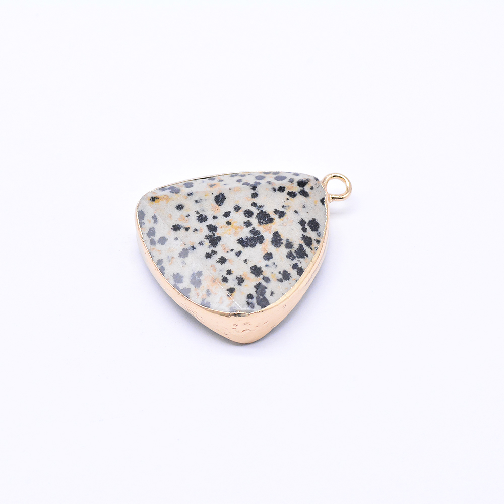 天然石ペンダントトップ ダルメシアンジャスパー 三角形カット ゴールド (1ヶ)