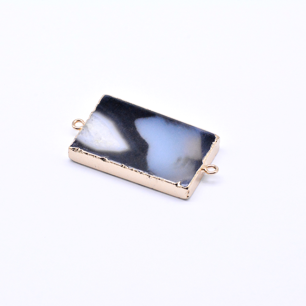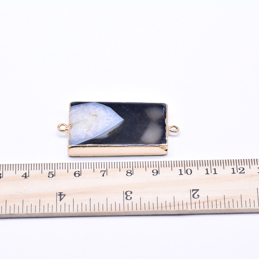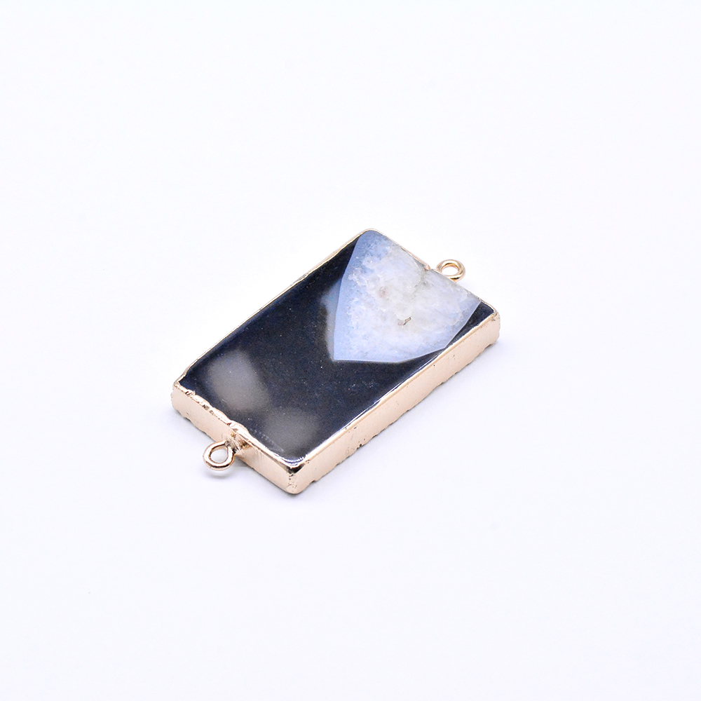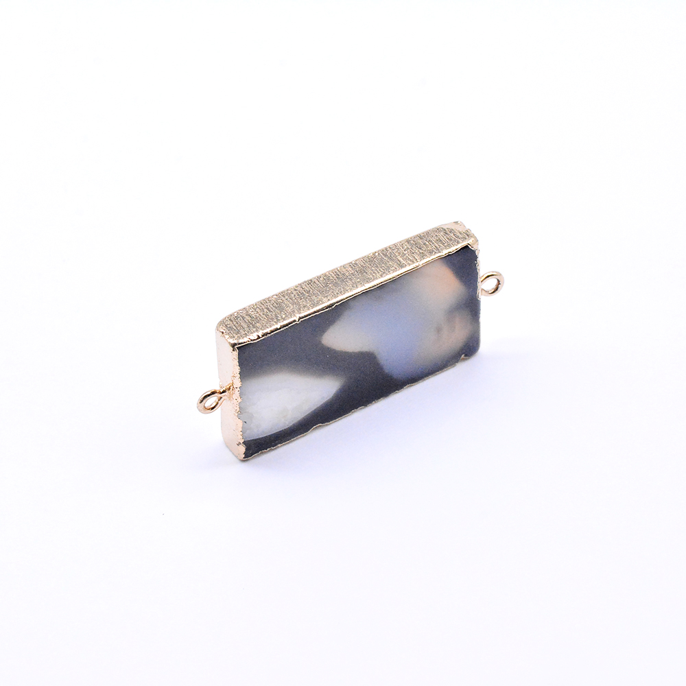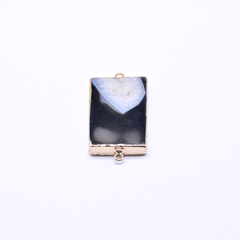 天然石コネクターチャーム 瑪瑙 長方形 ブラック/ゴールド (1ヶ)