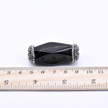 ラインストーン付き天然石パーツ 瑪瑙 円筒形カット ブラック (1ヶ)