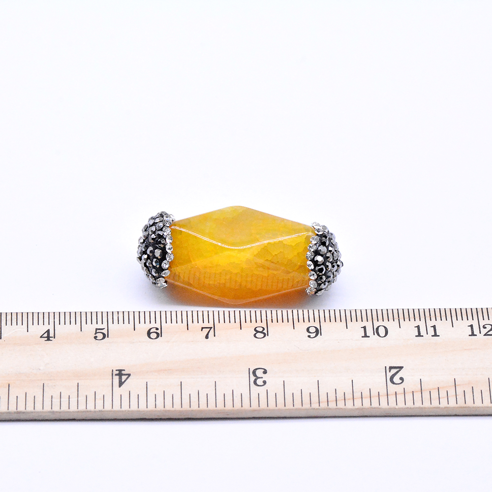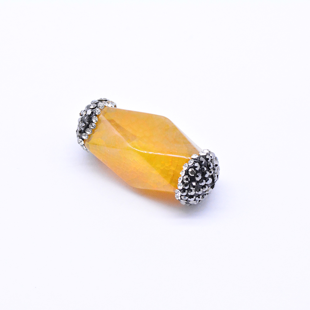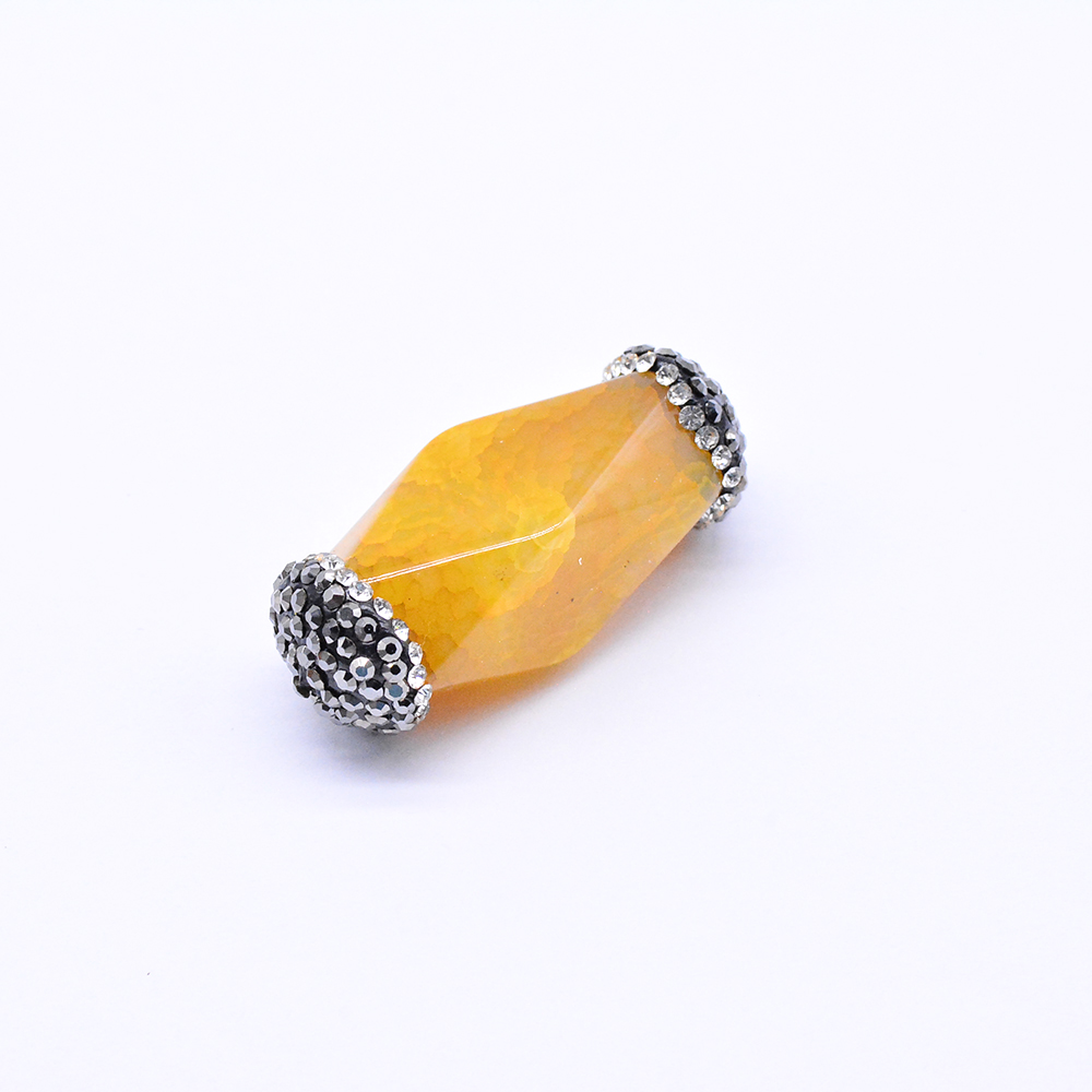ラインストーン付き天然石パーツ 瑪瑙 円筒形カット イエロー (1ヶ)