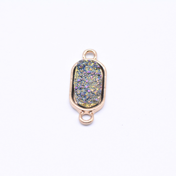 天然石コネクターチャーム 楕円形 2カン パープル/ゴールド (1ヶ)