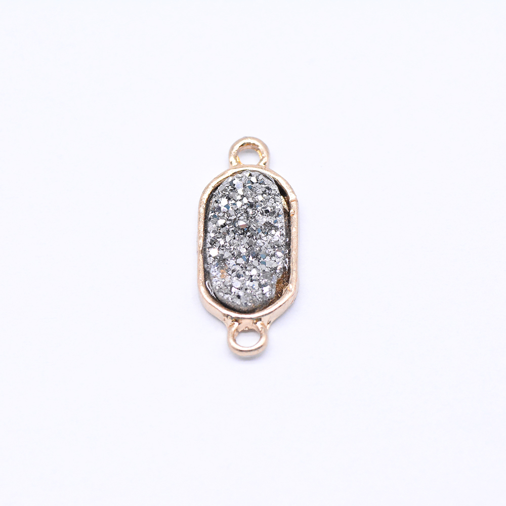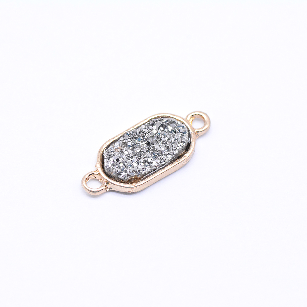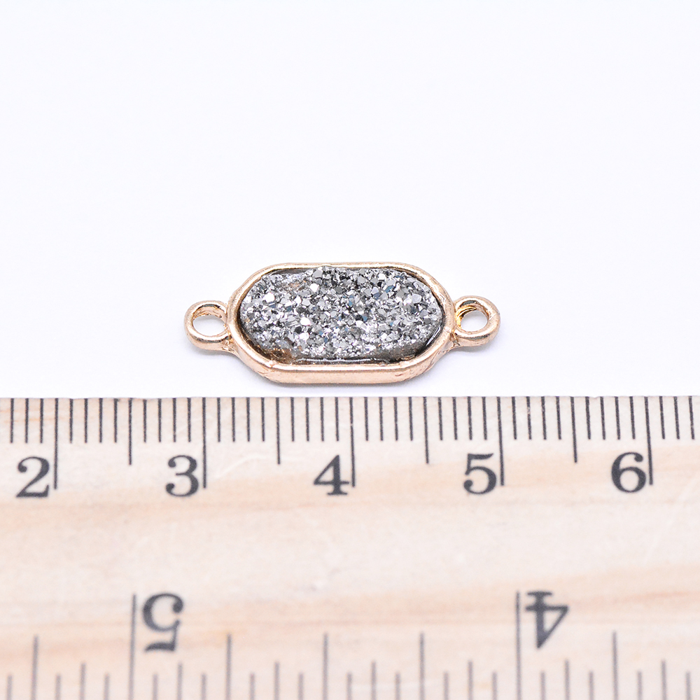 天然石コネクターチャーム 楕円形 2カン シルバー/ゴールド (1ヶ)