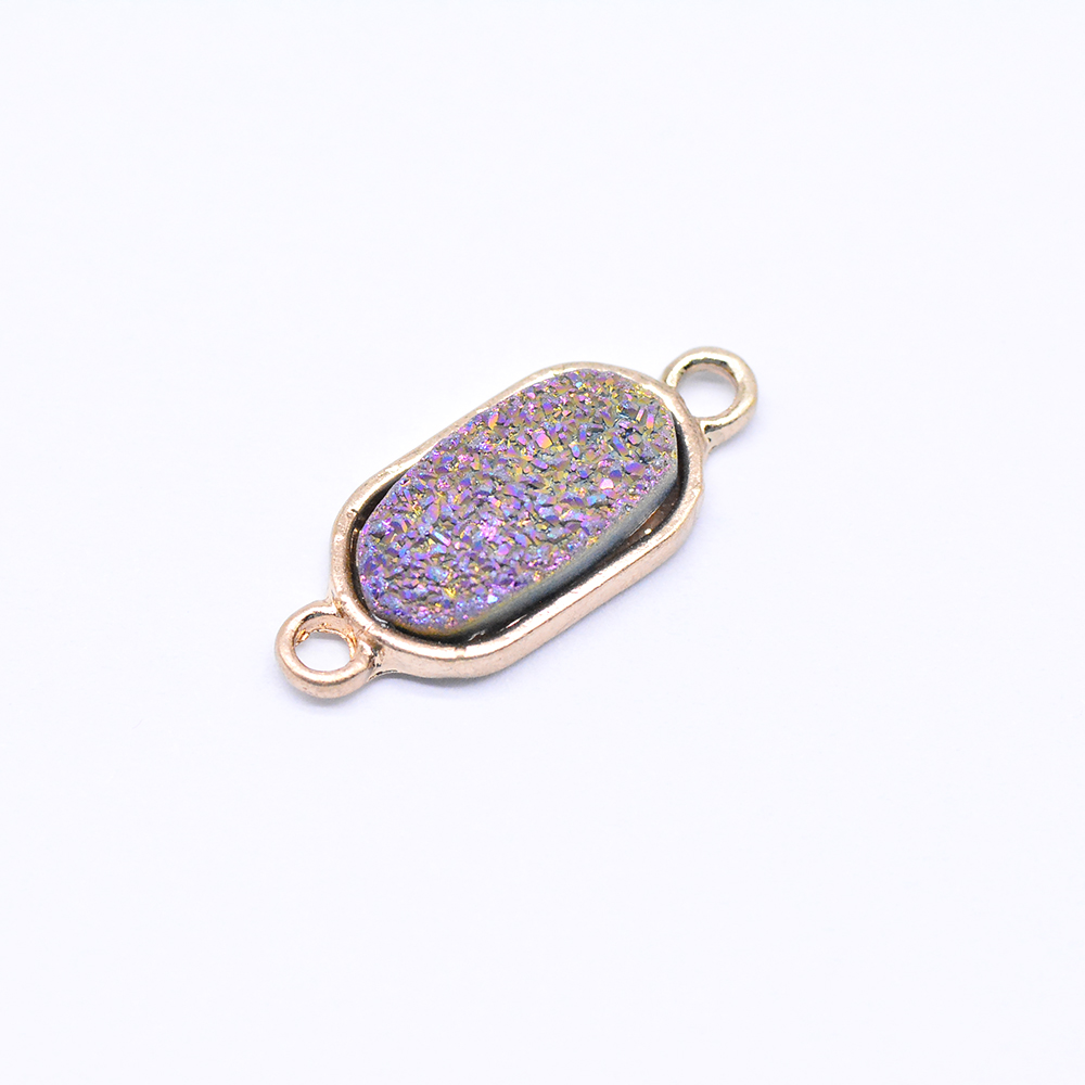 天然石コネクターチャーム 楕円形 2カン パープル/ゴールド (1ヶ)