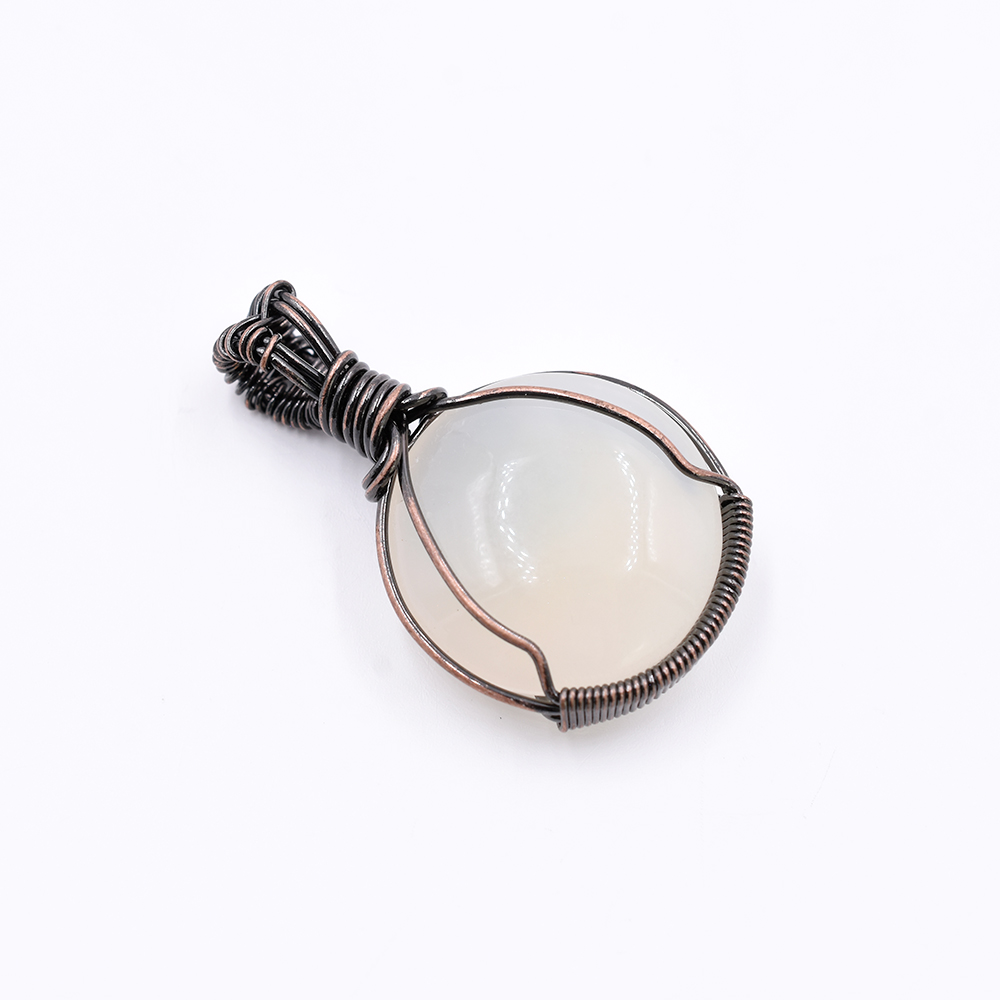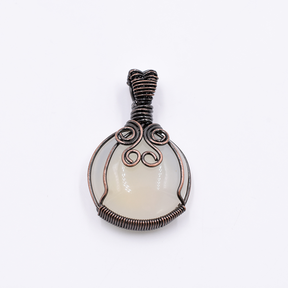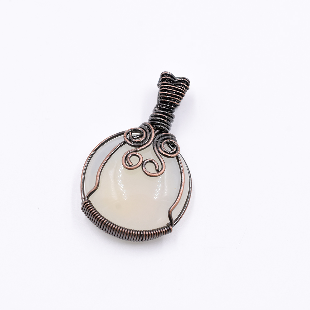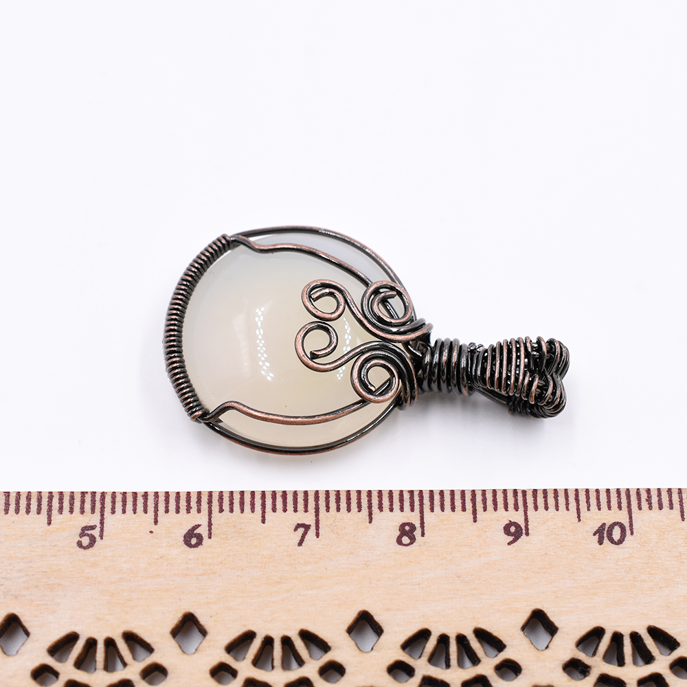 天然石チャーム ラウンド 1カン アイボリーアゲート 39x24mm 真鍮古美 (1ヶ)