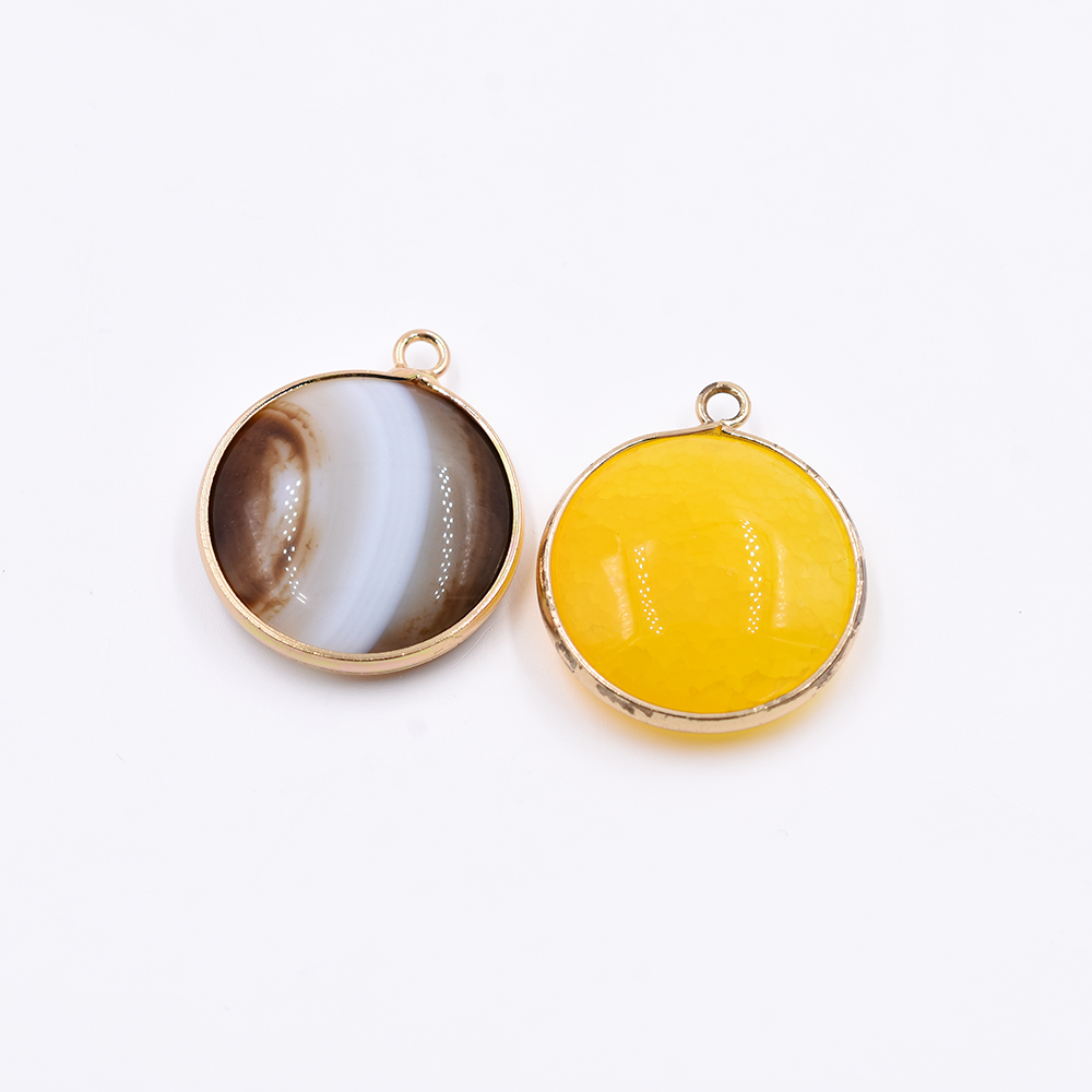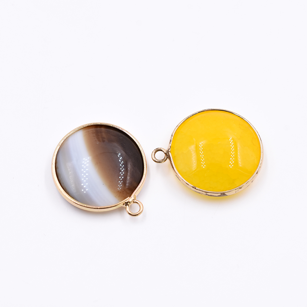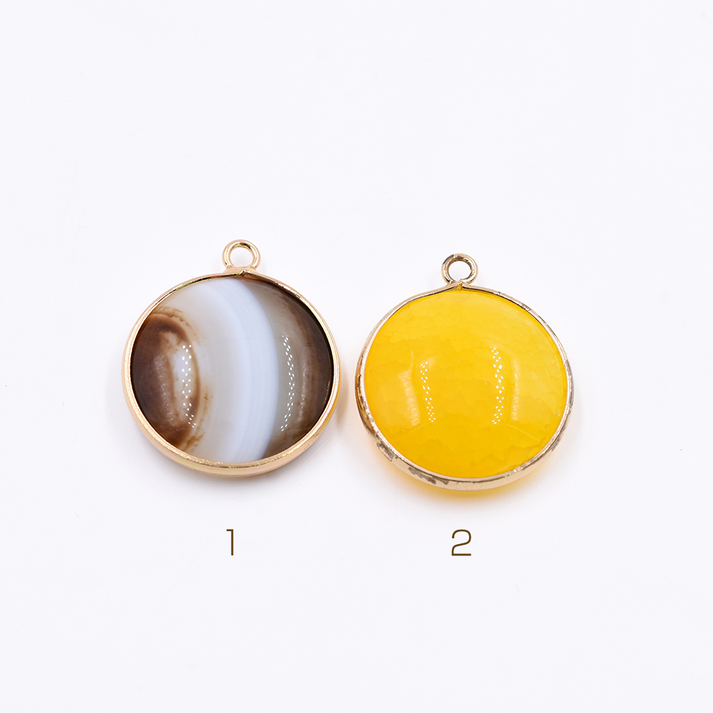 天然石フレームチャーム ラウンド 1カン 全2色 23x27mm ゴールド (1ヶ)