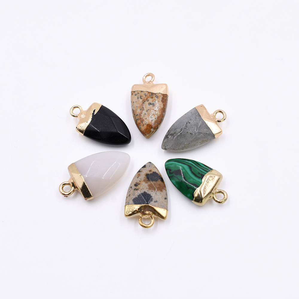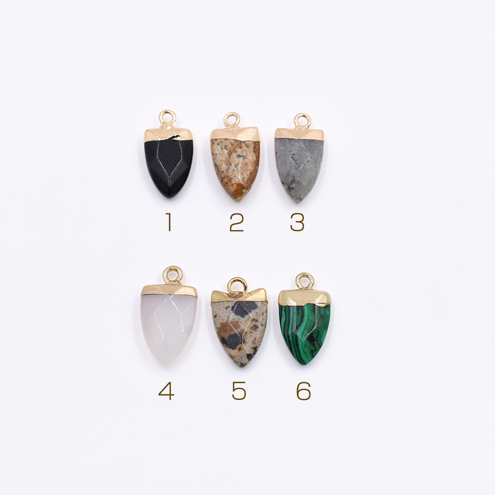 天然石フレームチャーム 三角形カット 1カン 全6色 18x11mm ゴールド (1ヶ)