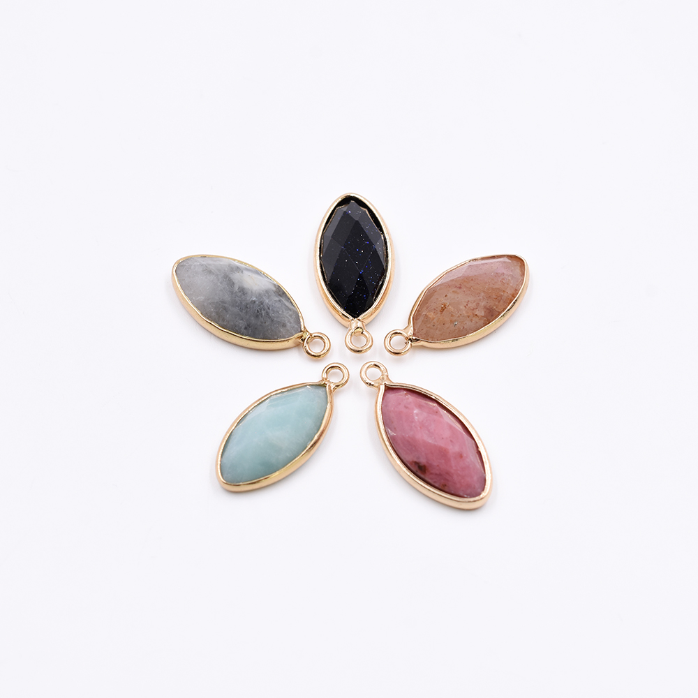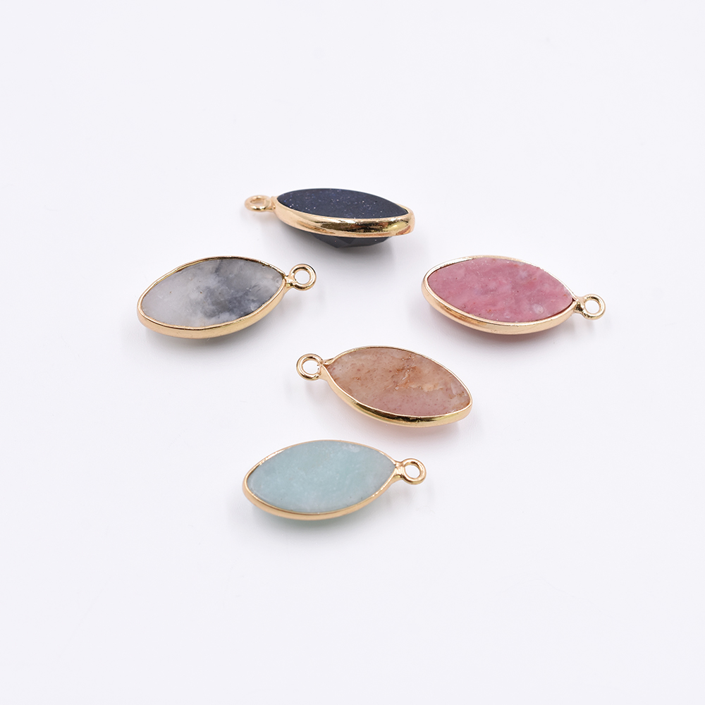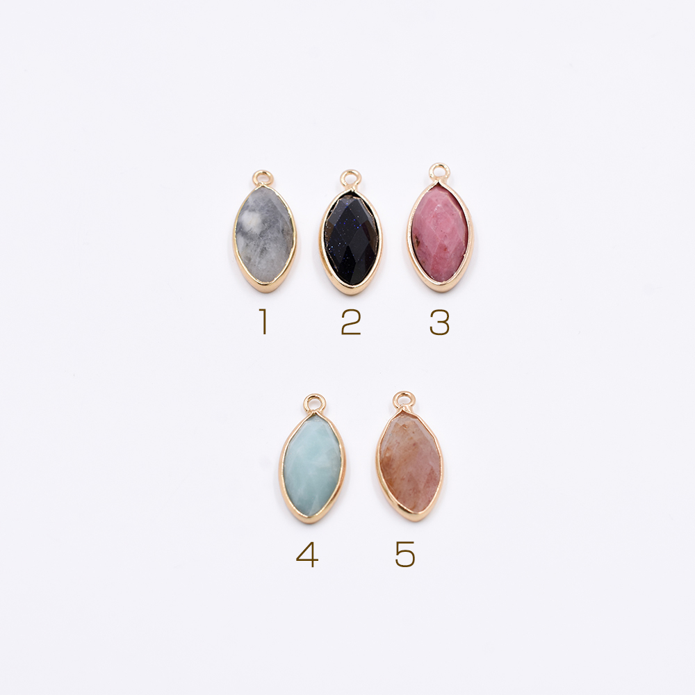 天然石フレームチャーム 馬目型カット 1カン 全5色 20x9mm ゴールド (1ヶ)