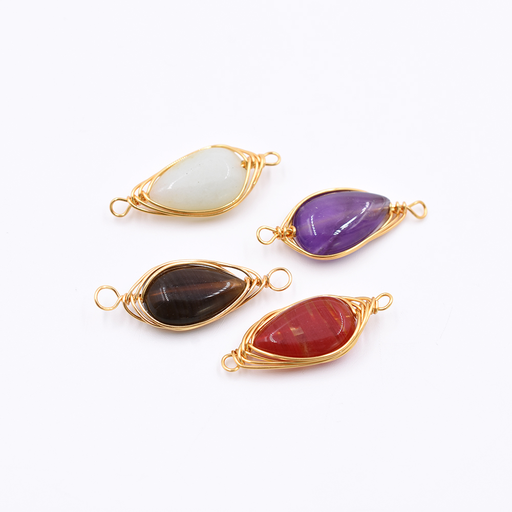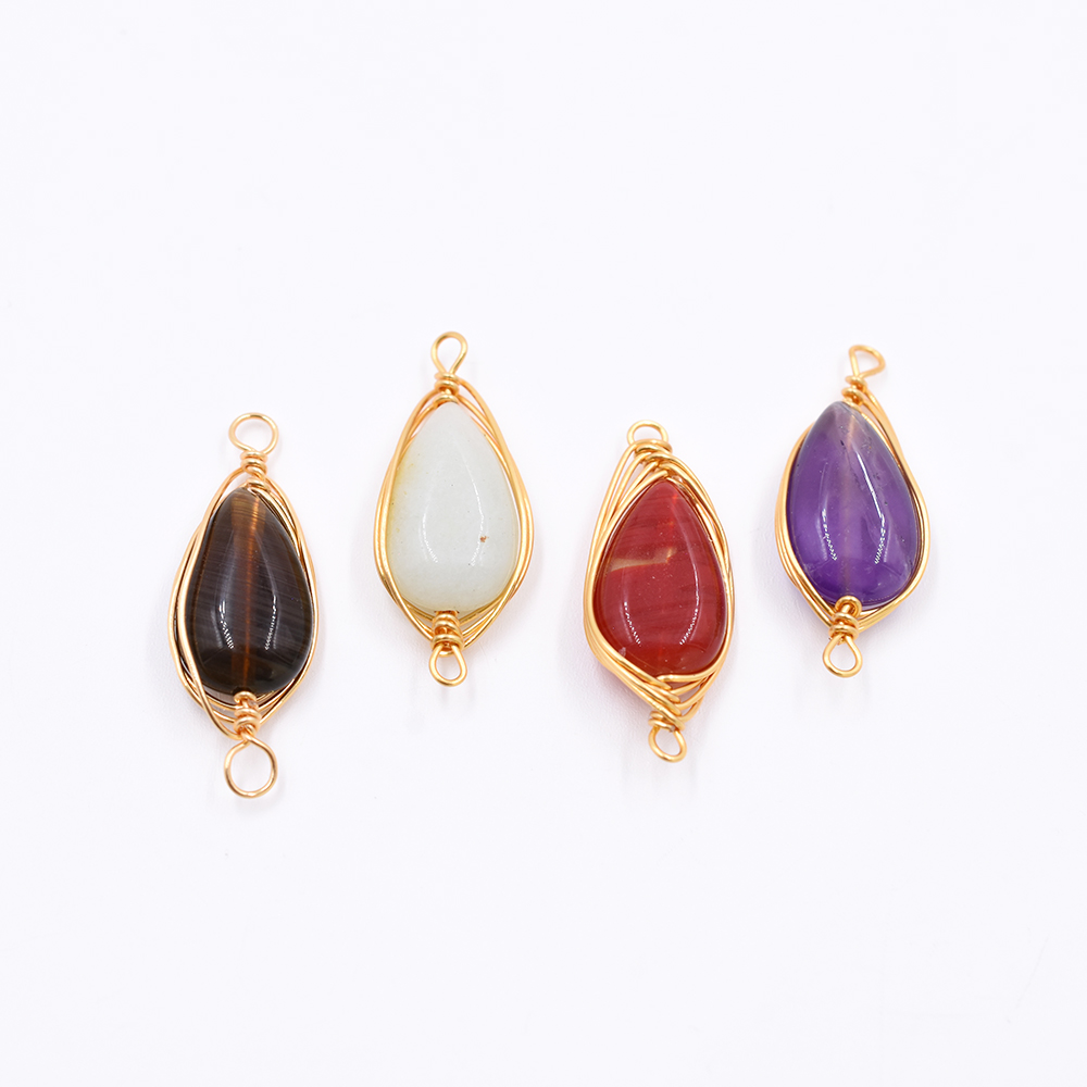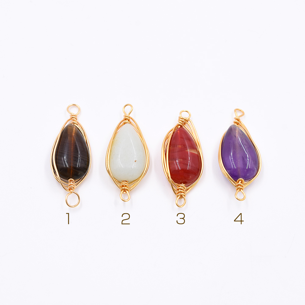 天然石コネクターチャーム しずく型 2カン 全4色 22x19mm ゴールド (1ヶ)