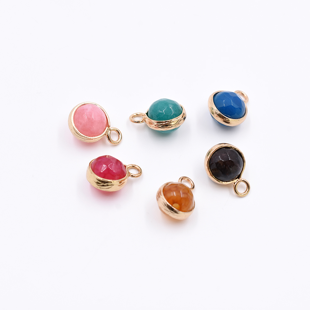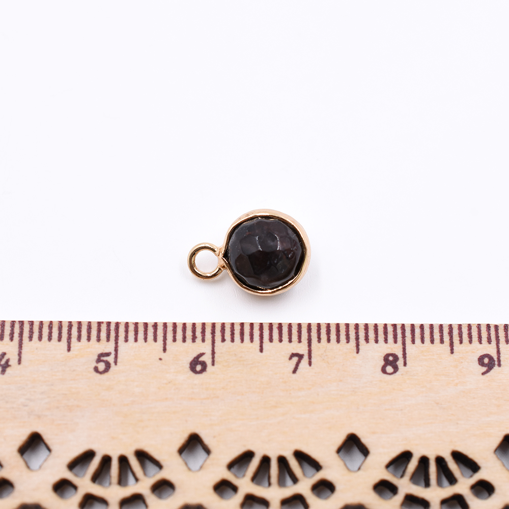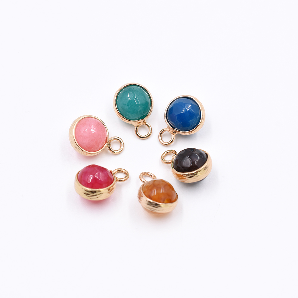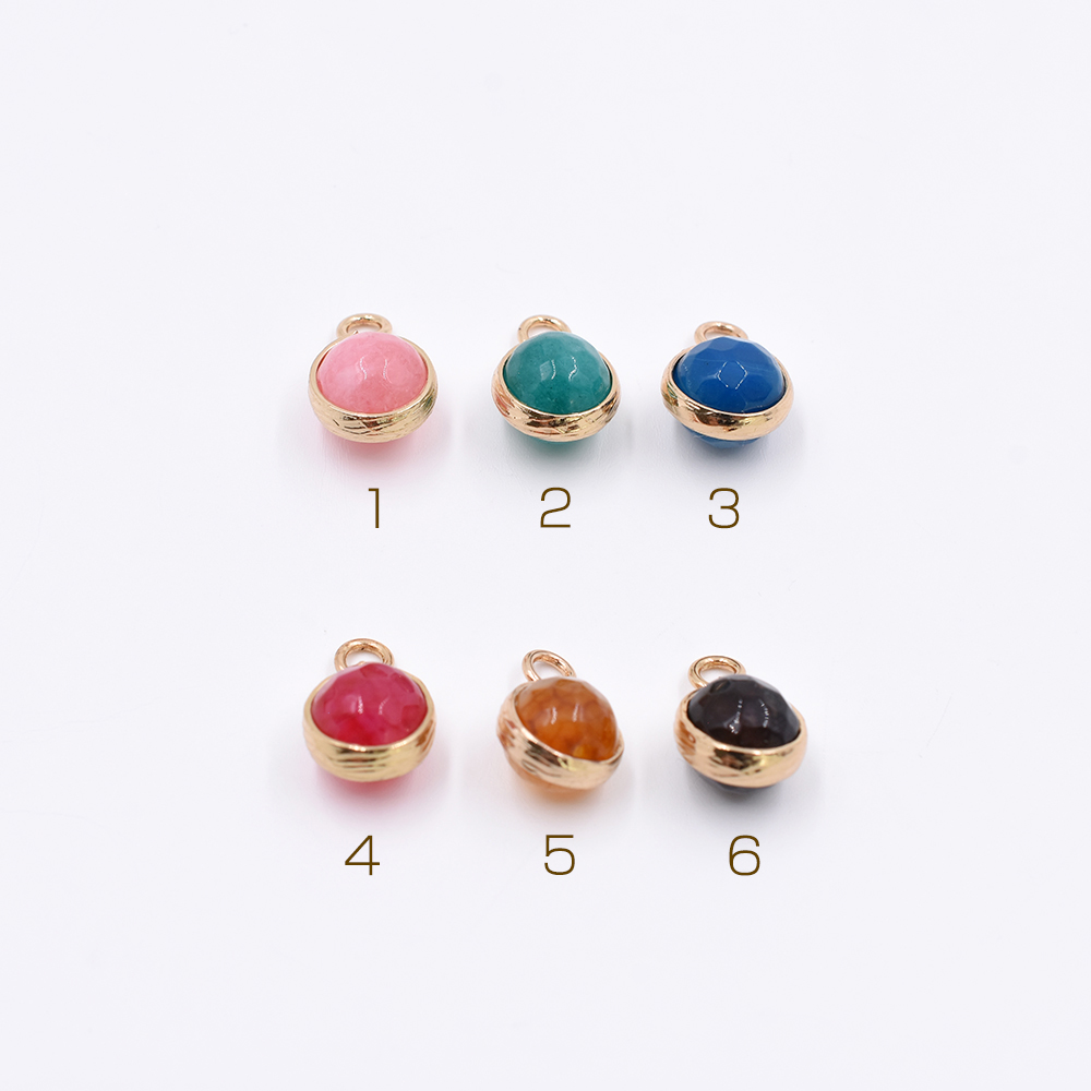 天然石フレームチャーム ラウンドカット 1カン 全6色 13x9mm ゴールド (1ヶ)