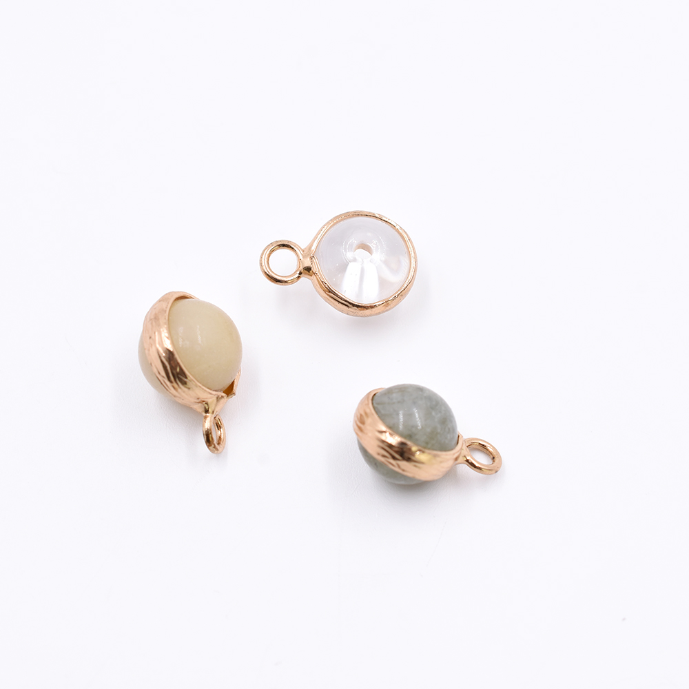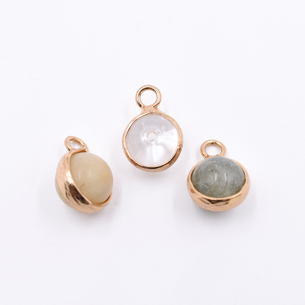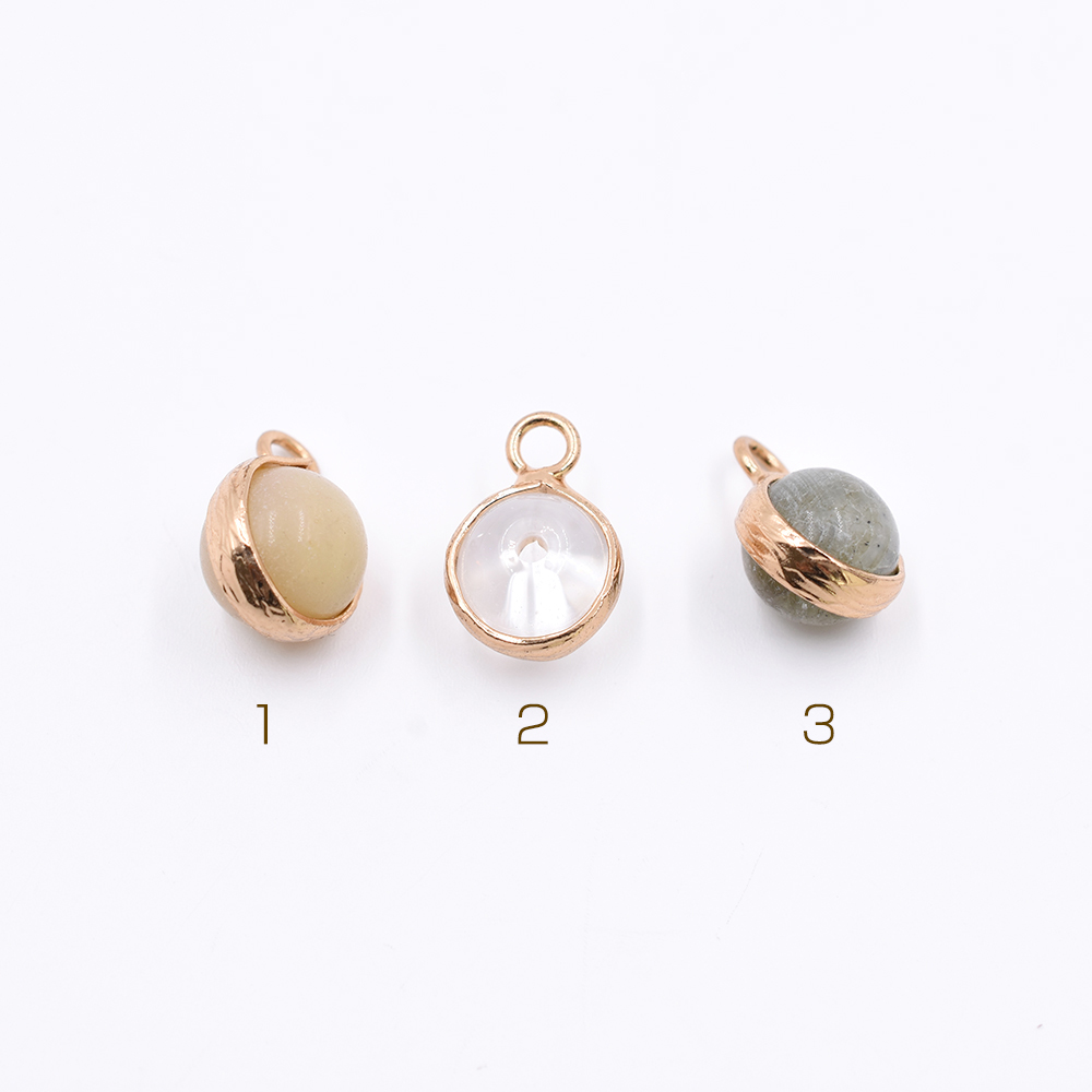 天然石フレームチャーム ラウンド 1カン 全3色 13x9mm ゴールド (1ヶ)