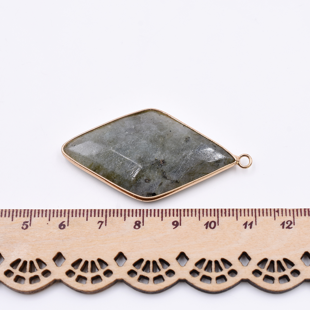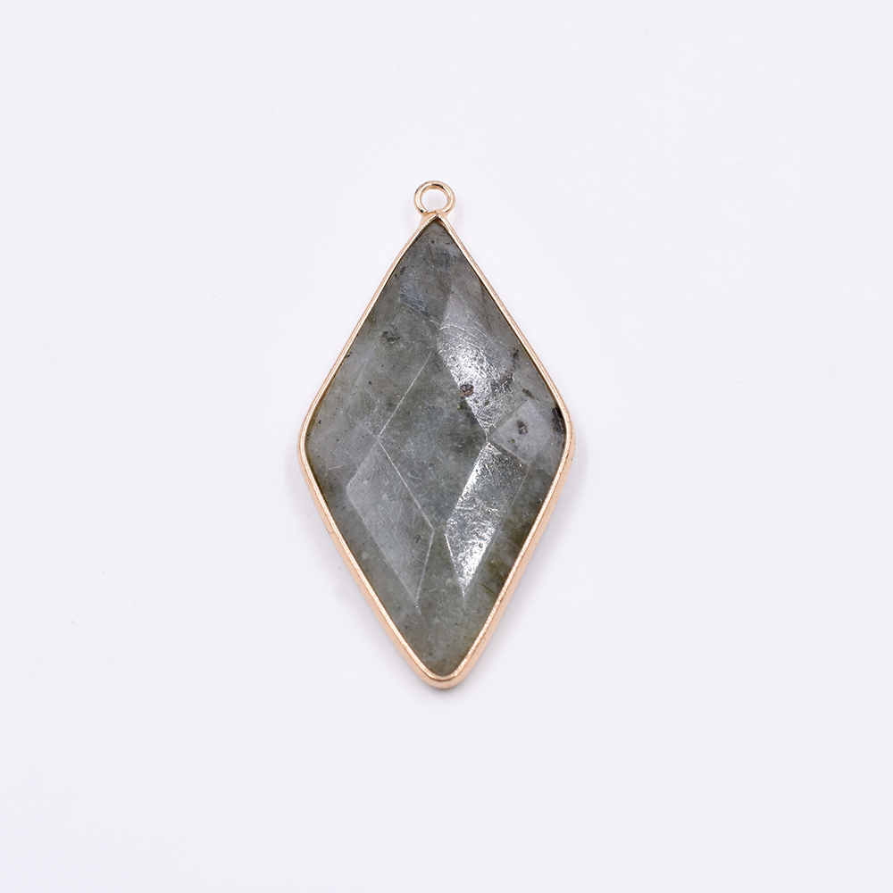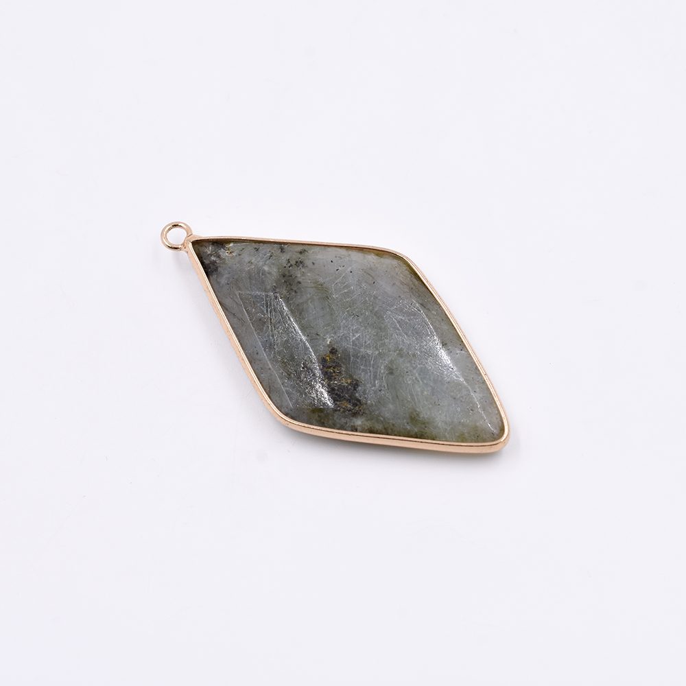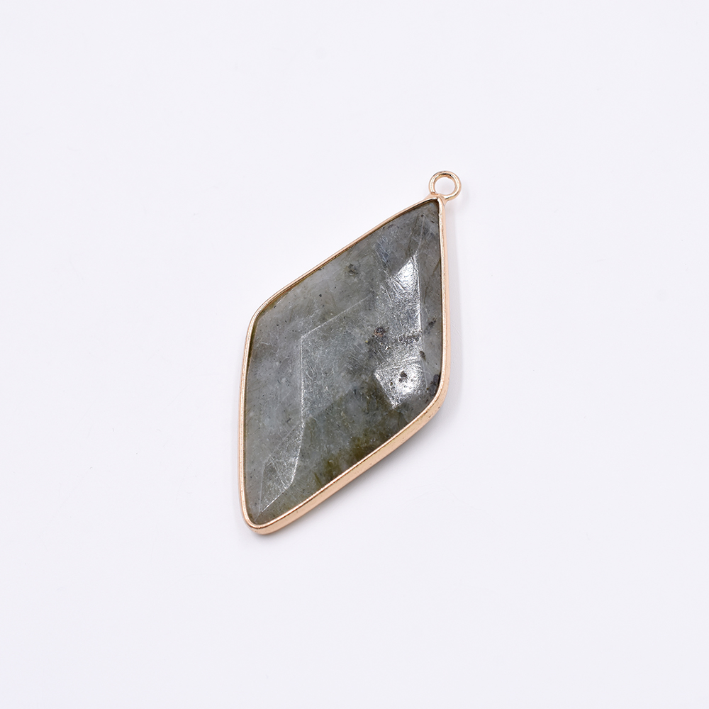天然石フレームチャーム 三角形カット 1カン グレーアゲート 52x27mm ゴールド (1ヶ)