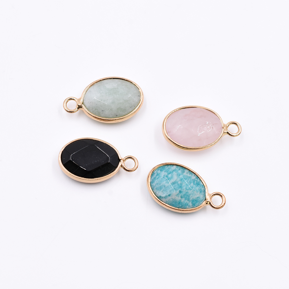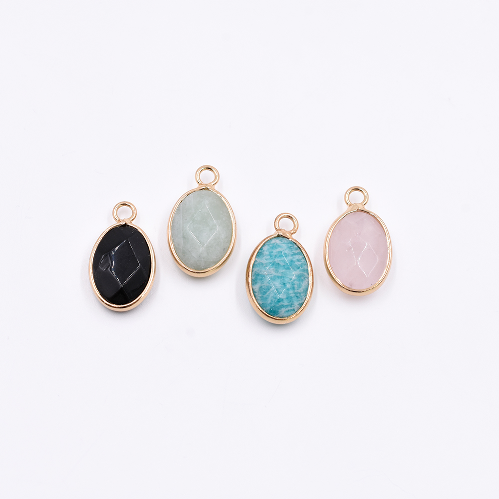 天然石フレームチャーム オーバルカット 1カン 全4色 20x12mm ゴールド (1ヶ)