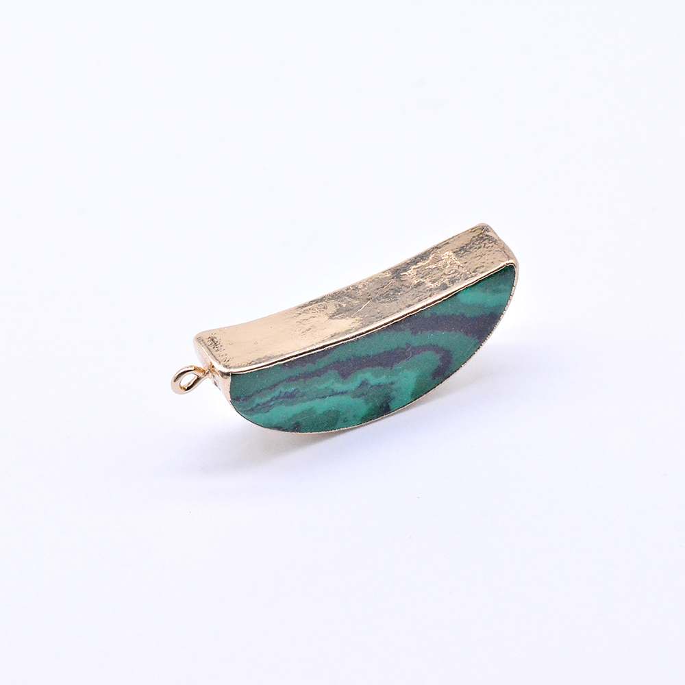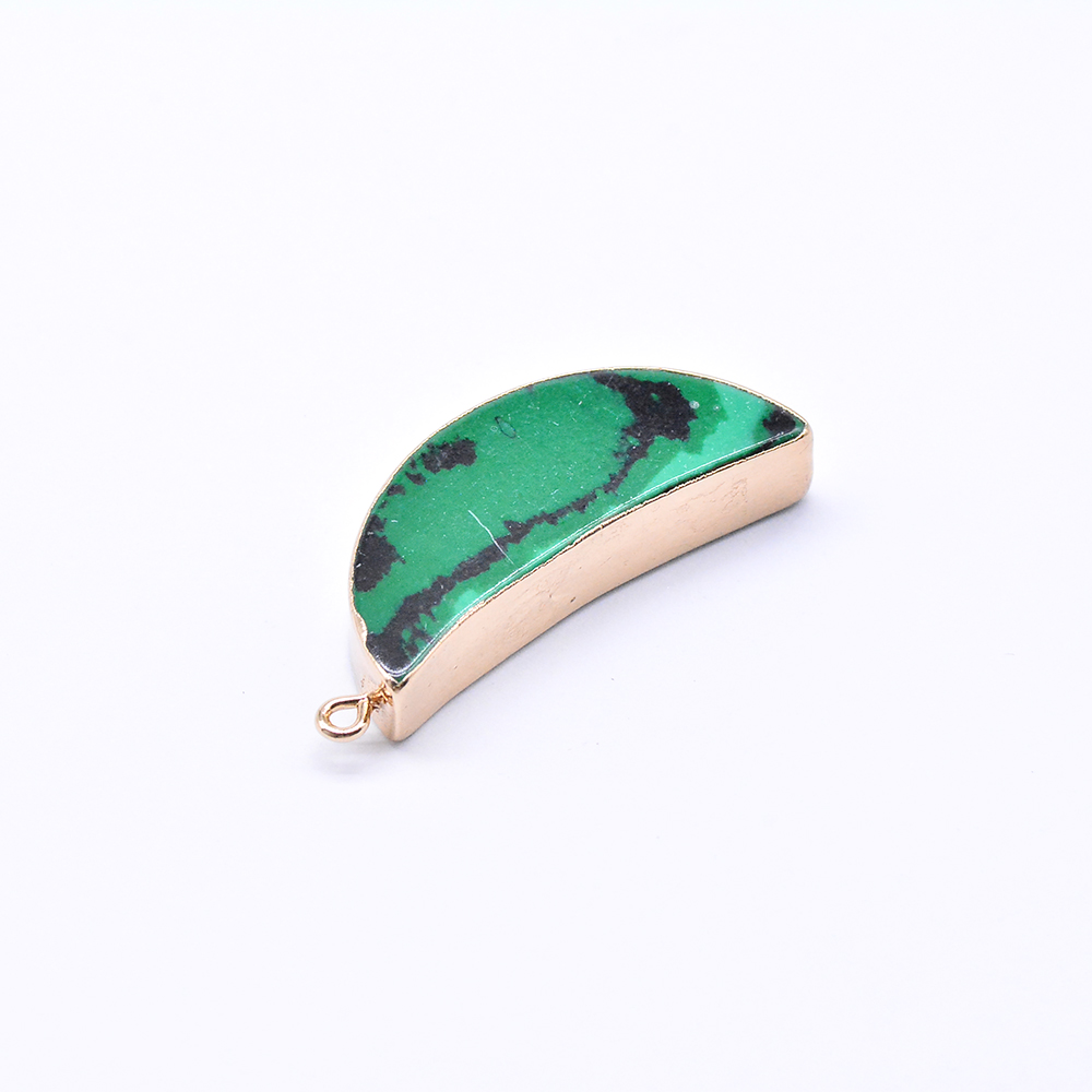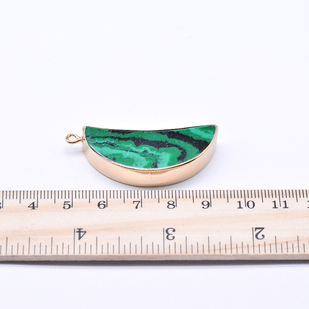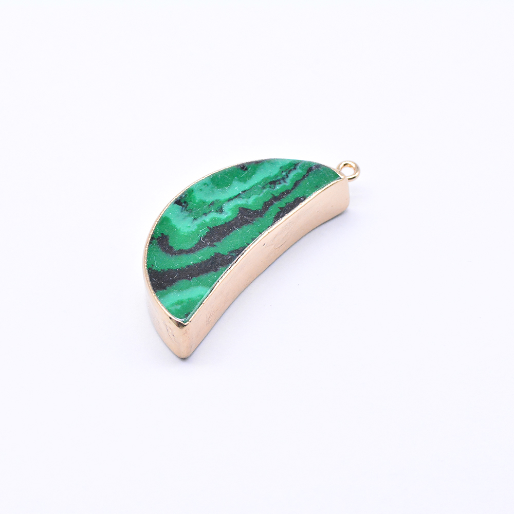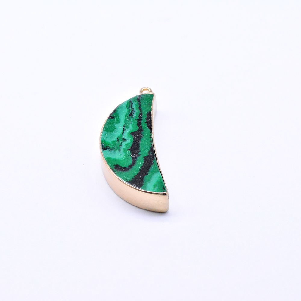 天然石ペンダントトップ マラカイト 月型 ゴールド (1ヶ)