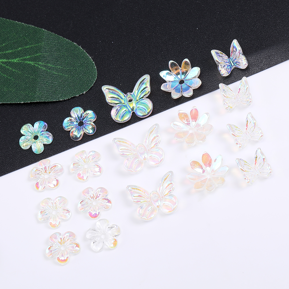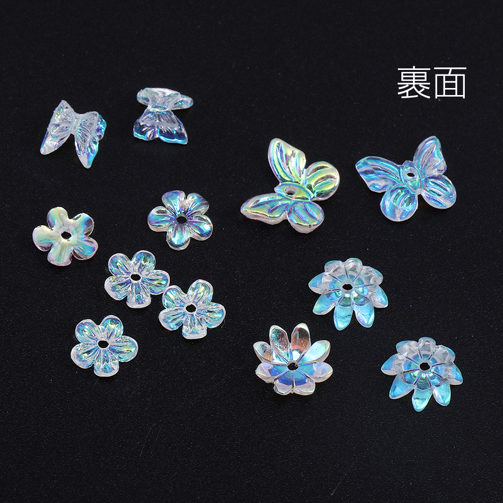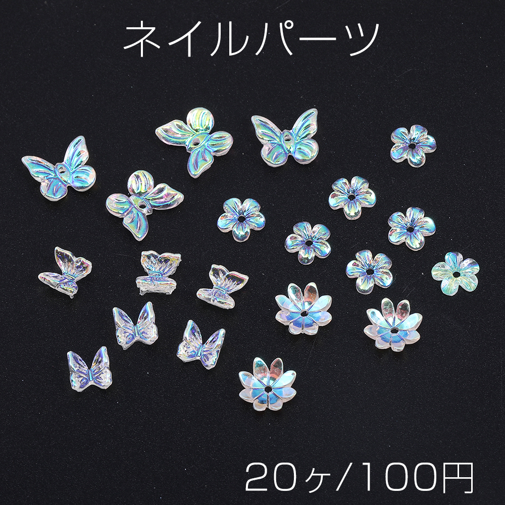 ジェルネイルパーツ 樹脂貼付けパーツ 立体蝶 フラワーパーツ オーロラカラー 全4種(20ヶ)