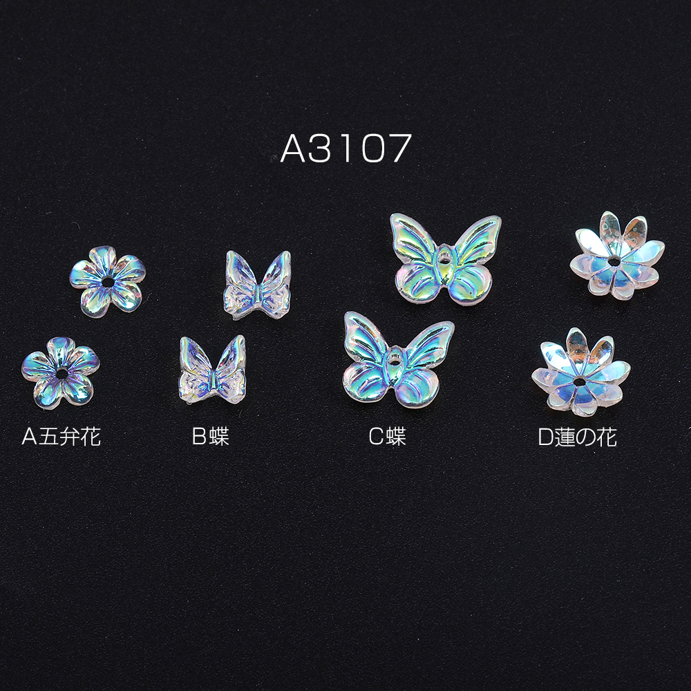 サイズ:(A五弁花)約7×7mm(B蝶)約6×6mm(C蝶)約9×11mm(D蓮の花)約9×9mm