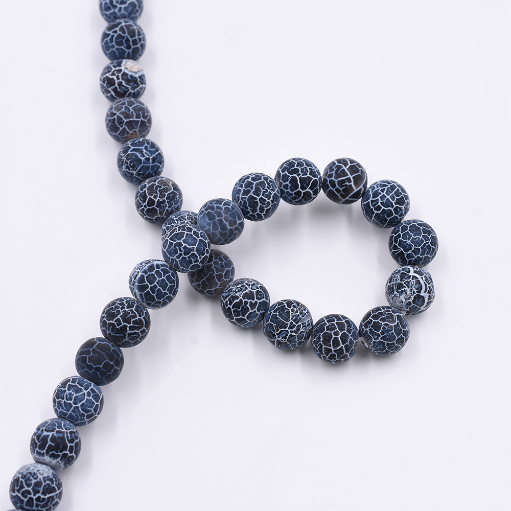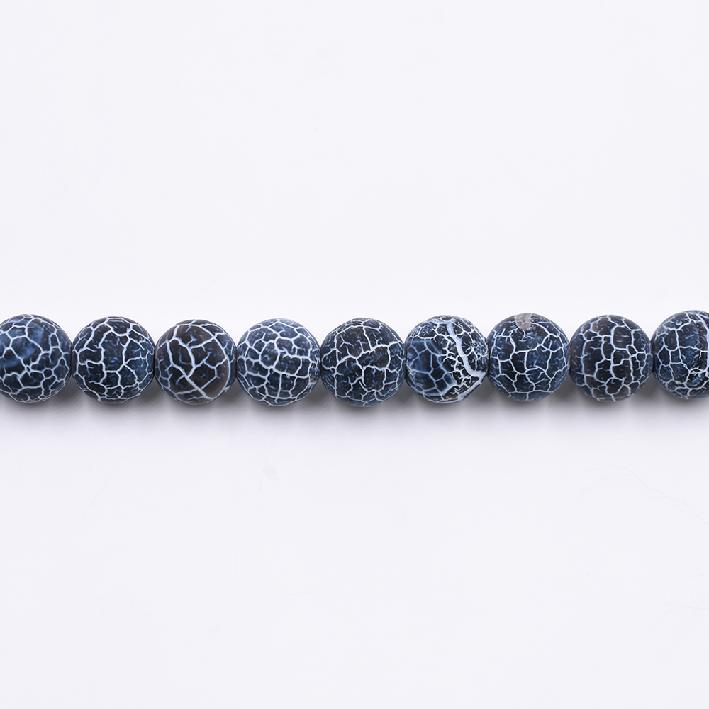 天然石ビーズ ラウンド ブルークラックアゲート 8mm 1連(約48ケ)