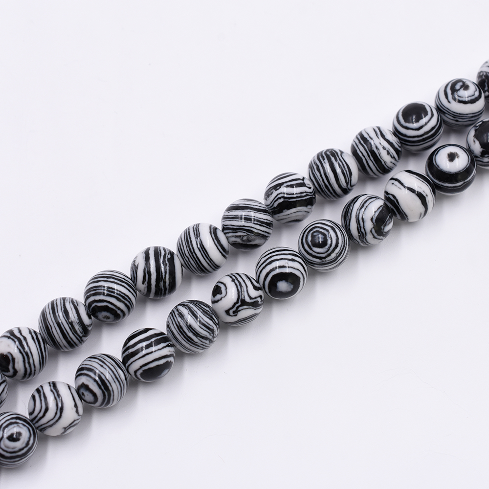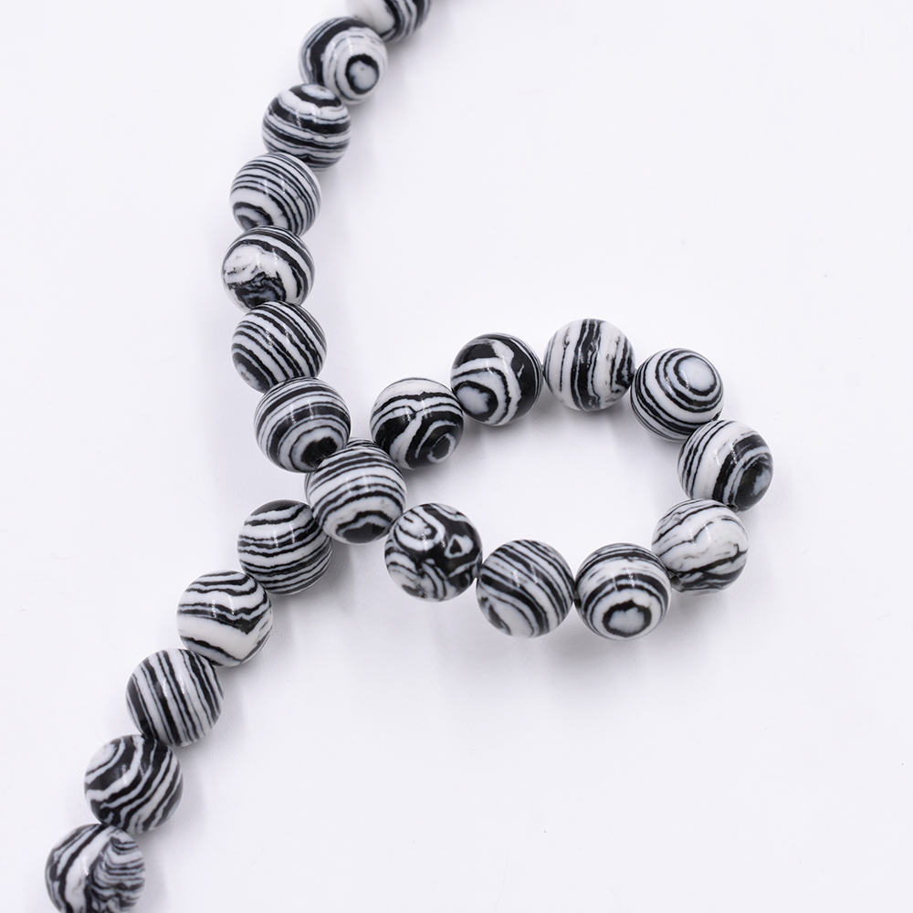 天然石ビーズ ラウンド ブラックマラカイト 8mm 1連(約48ケ)