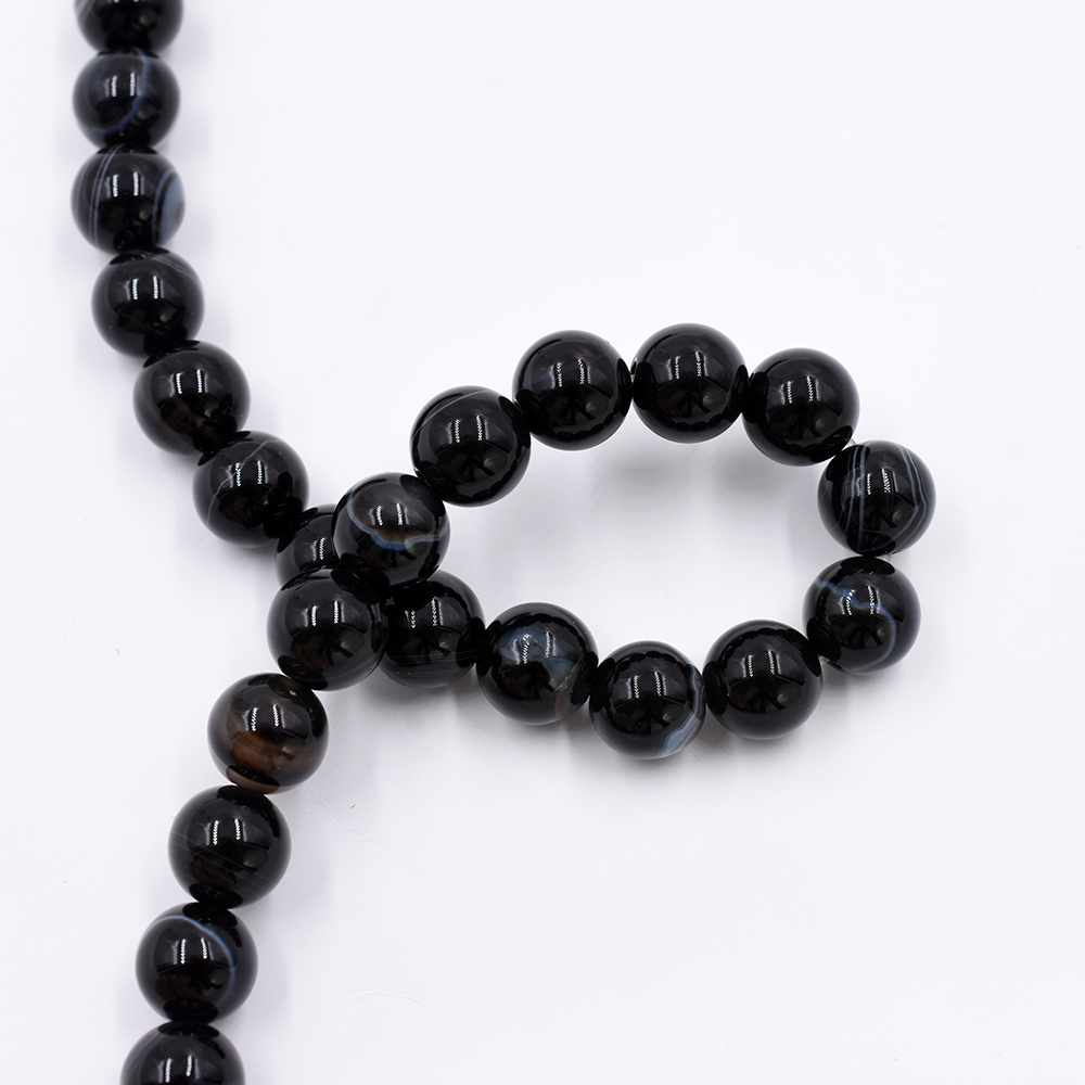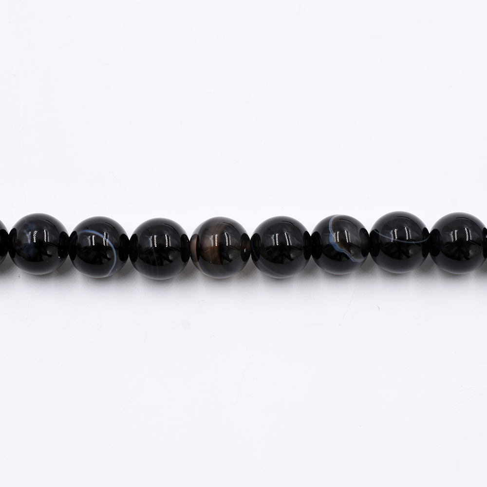 天然石ビーズ ラウンド ブラックストライプアゲート 10mm 1連(約38ケ)
