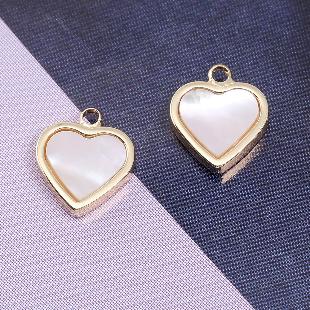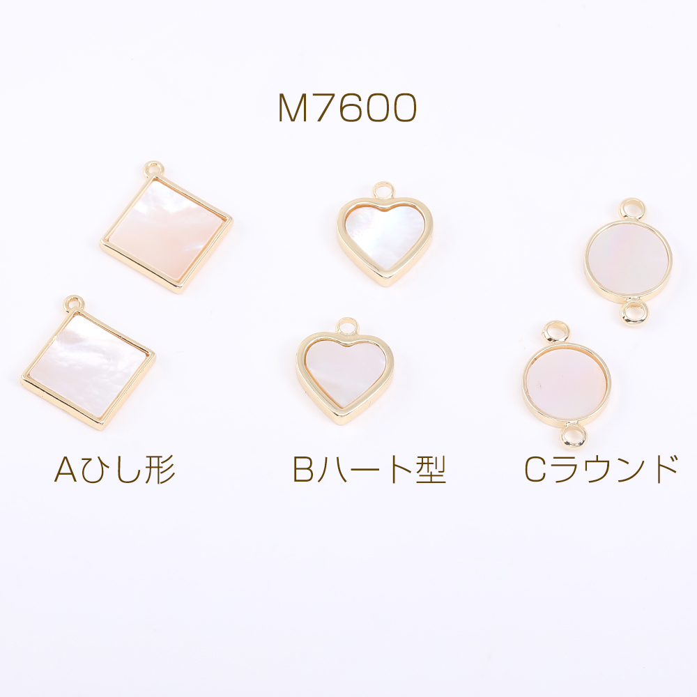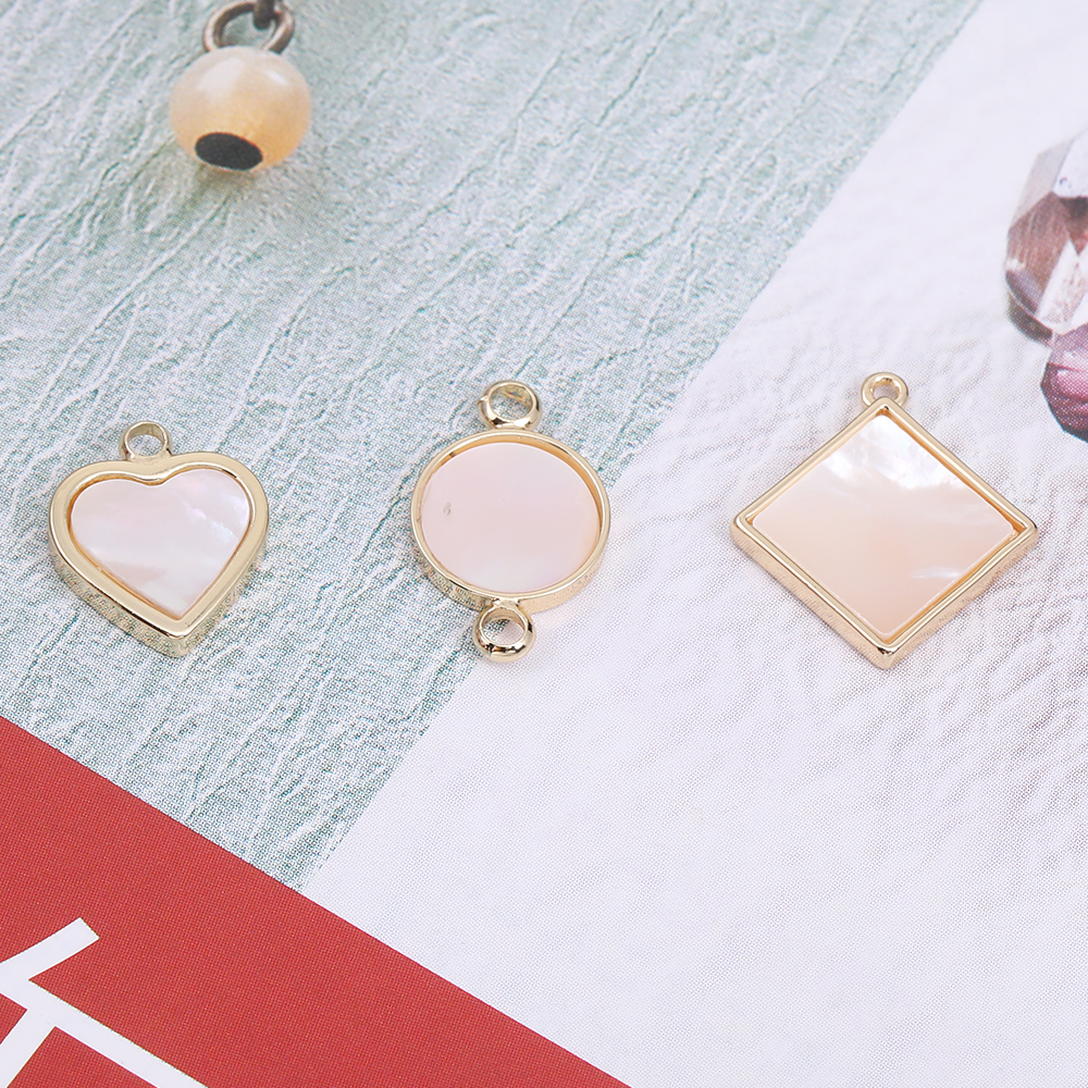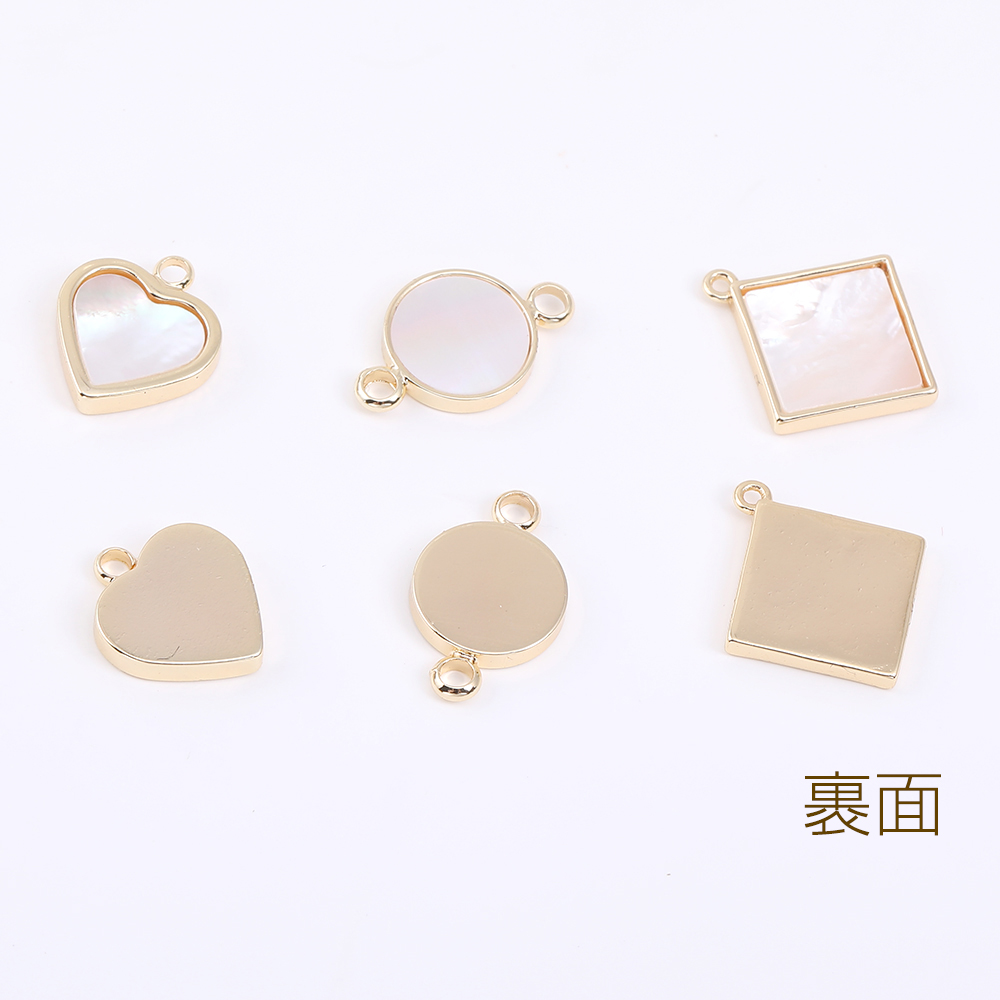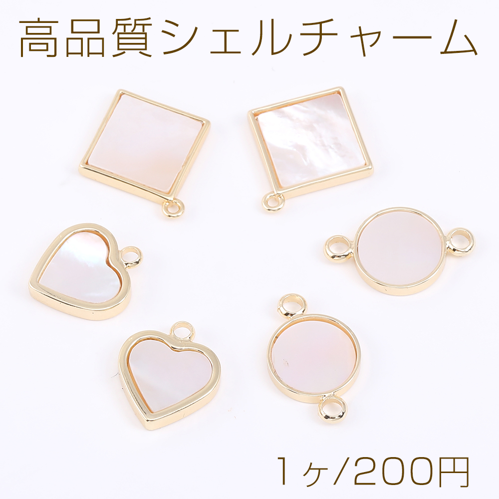 高品質シェルチャーム ひし形/ハート型/ラウンド ゴールド(1ヶ)