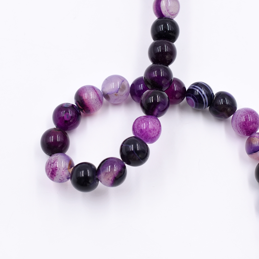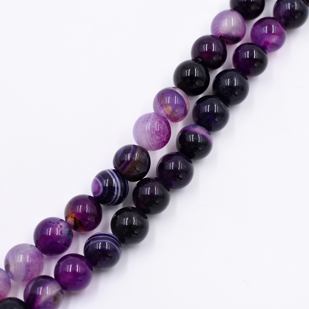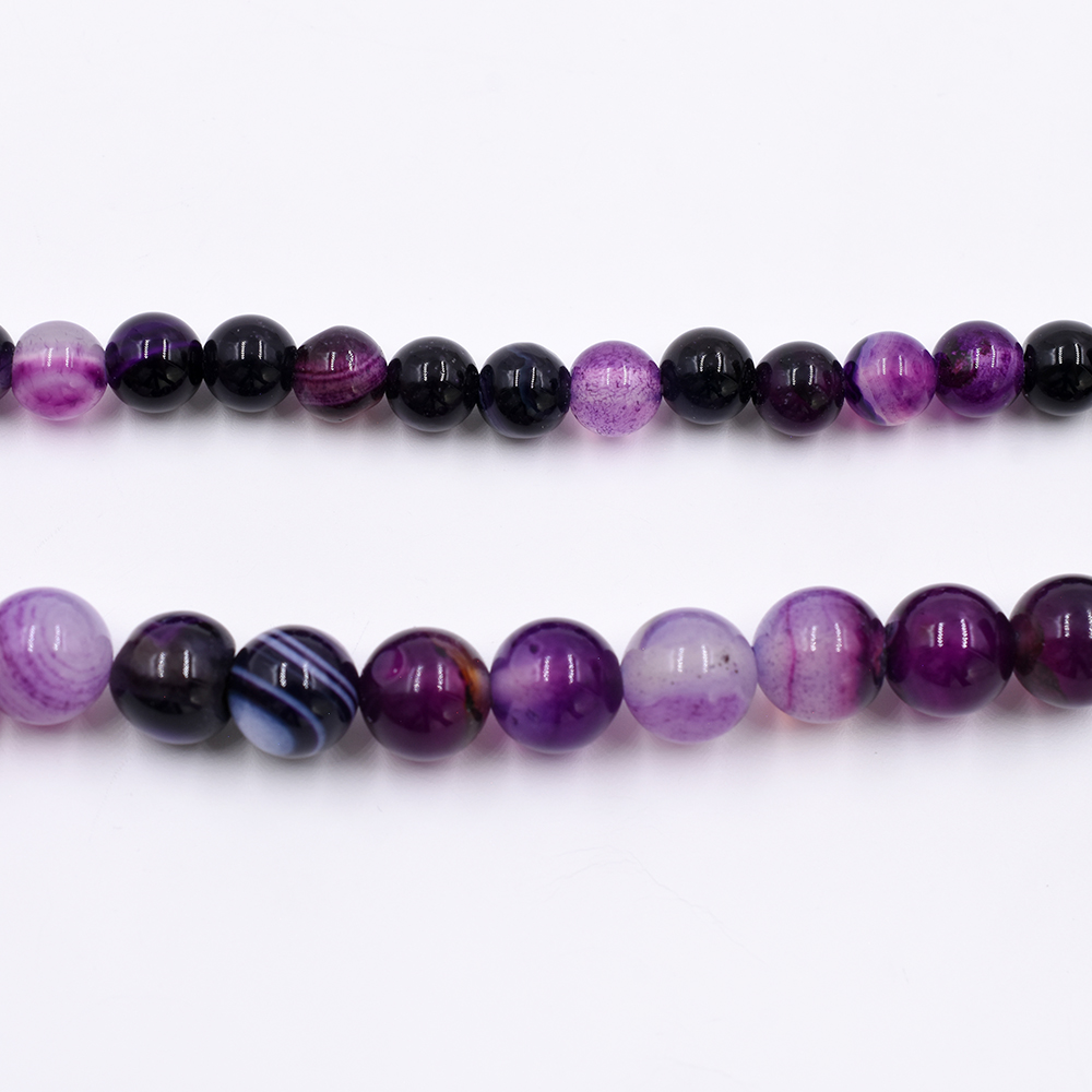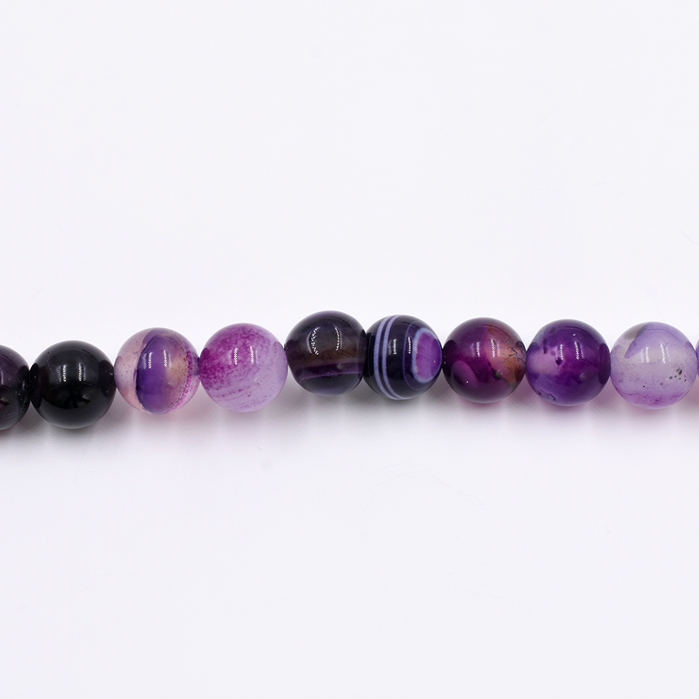 天然石ビーズ ラウンド パープルストライプアゲート 8mm 1連(約48ケ)